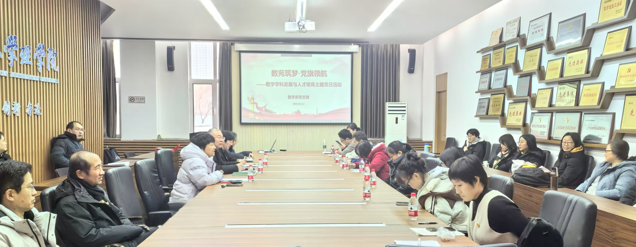 1月13日上午,理学院数学系“数苑筑梦·党旗领航”——数学学科发展与人才培育主题党日活动在建筑馆211A室举行。副校长王兴伟出席会议,理学院党委书记李晓璐、数学系党支部成员参加会议。