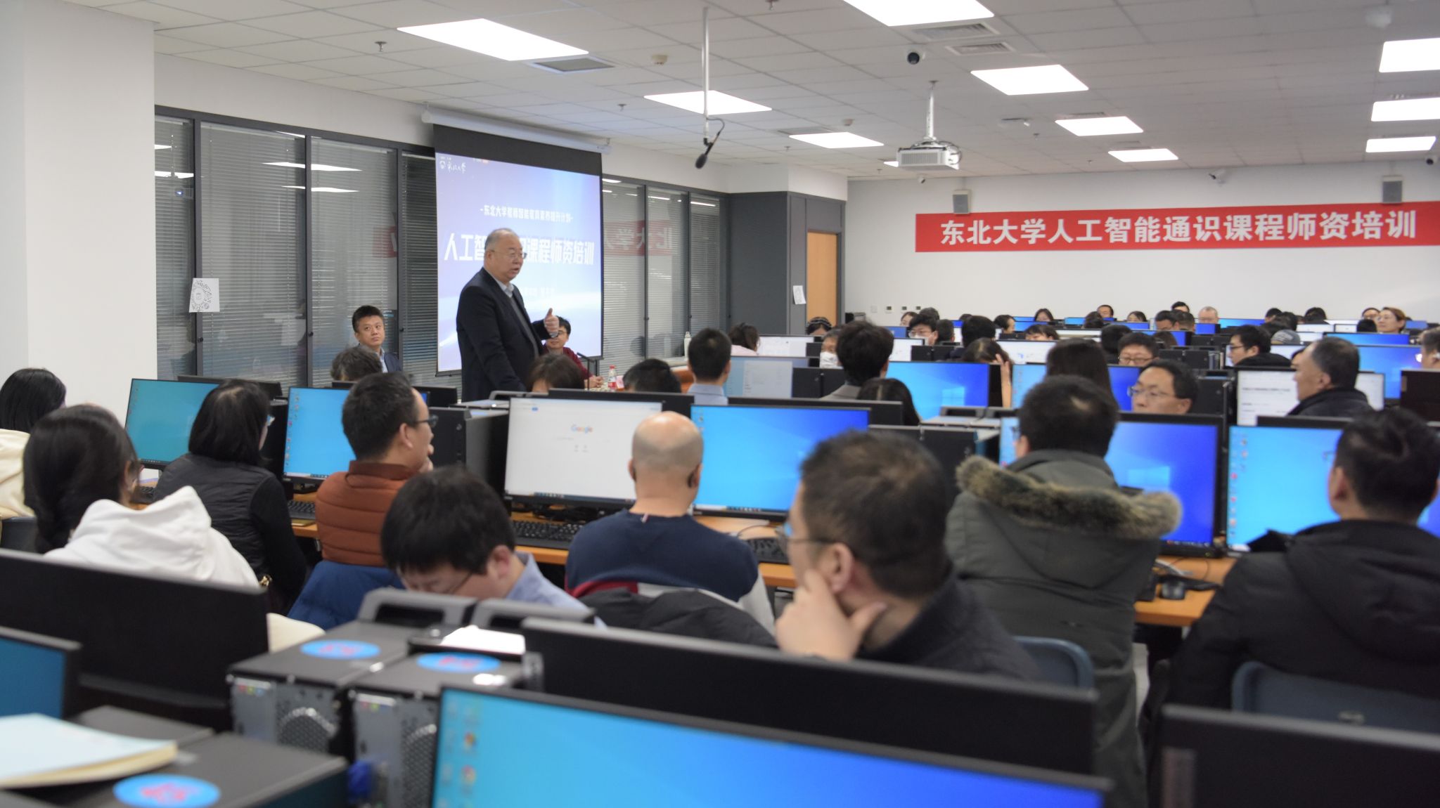 2月25日,太阳成集团tyc33455智能教育素养提升计划之人工智能通识课师资培训在南湖校区综合实验楼610室、603室举行。校党委常委、副校长王兴伟出席开班式,教师教学发展中心、教务处相关负责人,授课教师团队参加开班式,来自各学院的160余名教师参加培训。