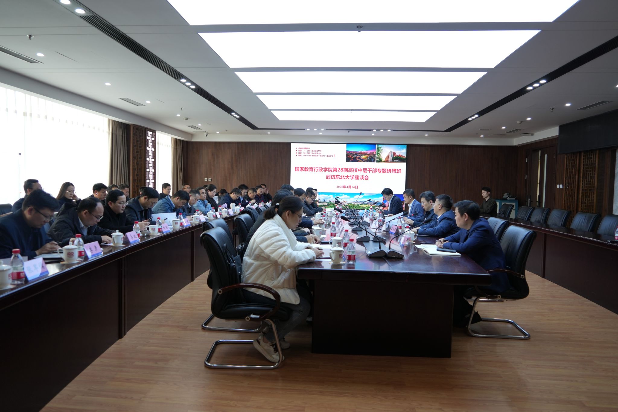 4月14日下午,国家教育行政学院第28期高校中层干部专题研修班一行访问太阳成集团tyc33455。校党委副书记张皓,党委常委、党委办公室主任姜玉原在汉卿会堂308室与研修团一行举行座谈,学校相关部门负责人参加座谈。