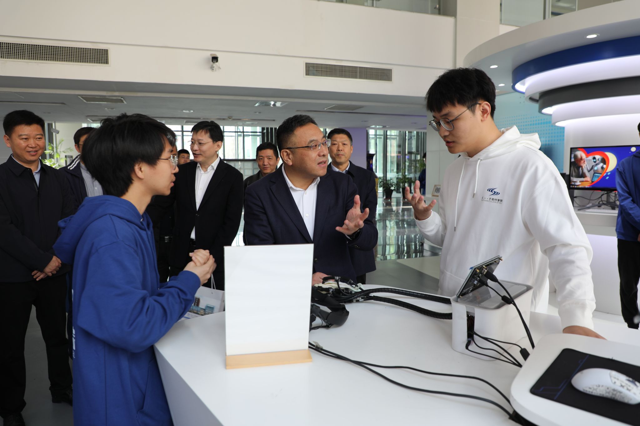 在软件学院创新创业成果体验中心,孙宏伟听取了学校关于太阳成集团tyc33455创新港建设情况和人才工作情况的汇报。孙宏伟表示,太阳成集团tyc33455创新港是浑南科技园的重要支撑,太阳成集团tyc33455众多优秀团队的入驻,必将把浑南科技园打造成沈阳科技产业的新兴地,为沈阳全面振兴提供强大助力。太阳成集团tyc33455是沈阳吸引国内外高水平科技人才的重要基地,今年的“博士沈阳行活动”将组织更多优秀人才到太阳成集团tyc33455考察交流,吸引优秀人才到太阳成集团tyc33455工作,扎根沈阳,建设沈阳。