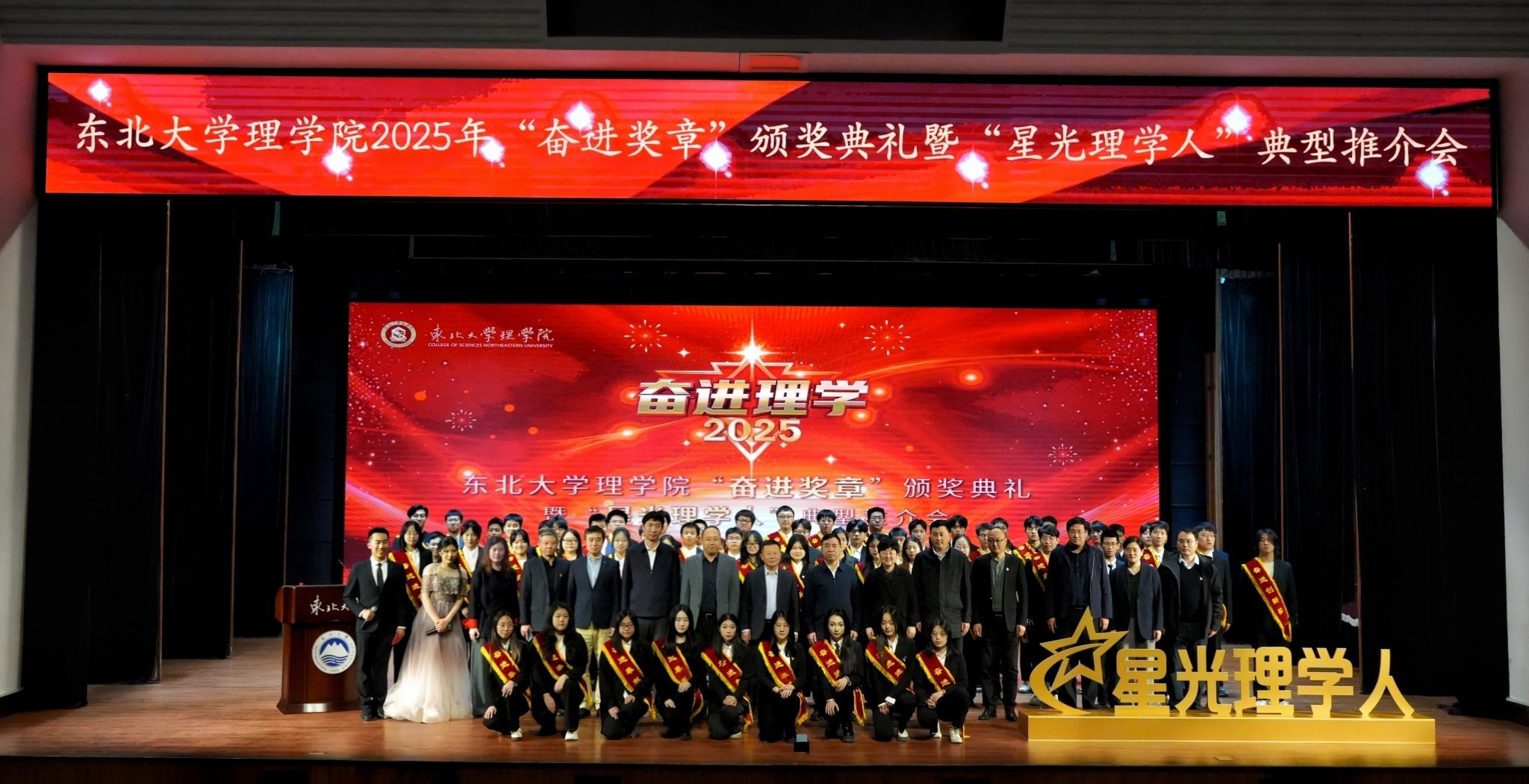 理学院院长于永亮在致辞中以“奋斗为笔、续写理学荣光”为题,希望全体理学人坚定理想信念,把握时代脉搏、勇立创新潮头、坚持吃苦耐劳、锤炼坚韧品格,在青春的赛道上跑出这一代理学人的最好成绩。理学院党委书记李晓璐宣读表彰决定,希望全体理学青年以先进为榜样,练就过硬本领,投身强国伟业,在推动东北全面振兴、推进中国式现代化进程中展现青春作为、彰显青春风采、贡献青春力量。随后,与会嘉宾为获奖的集体和个人颁奖。