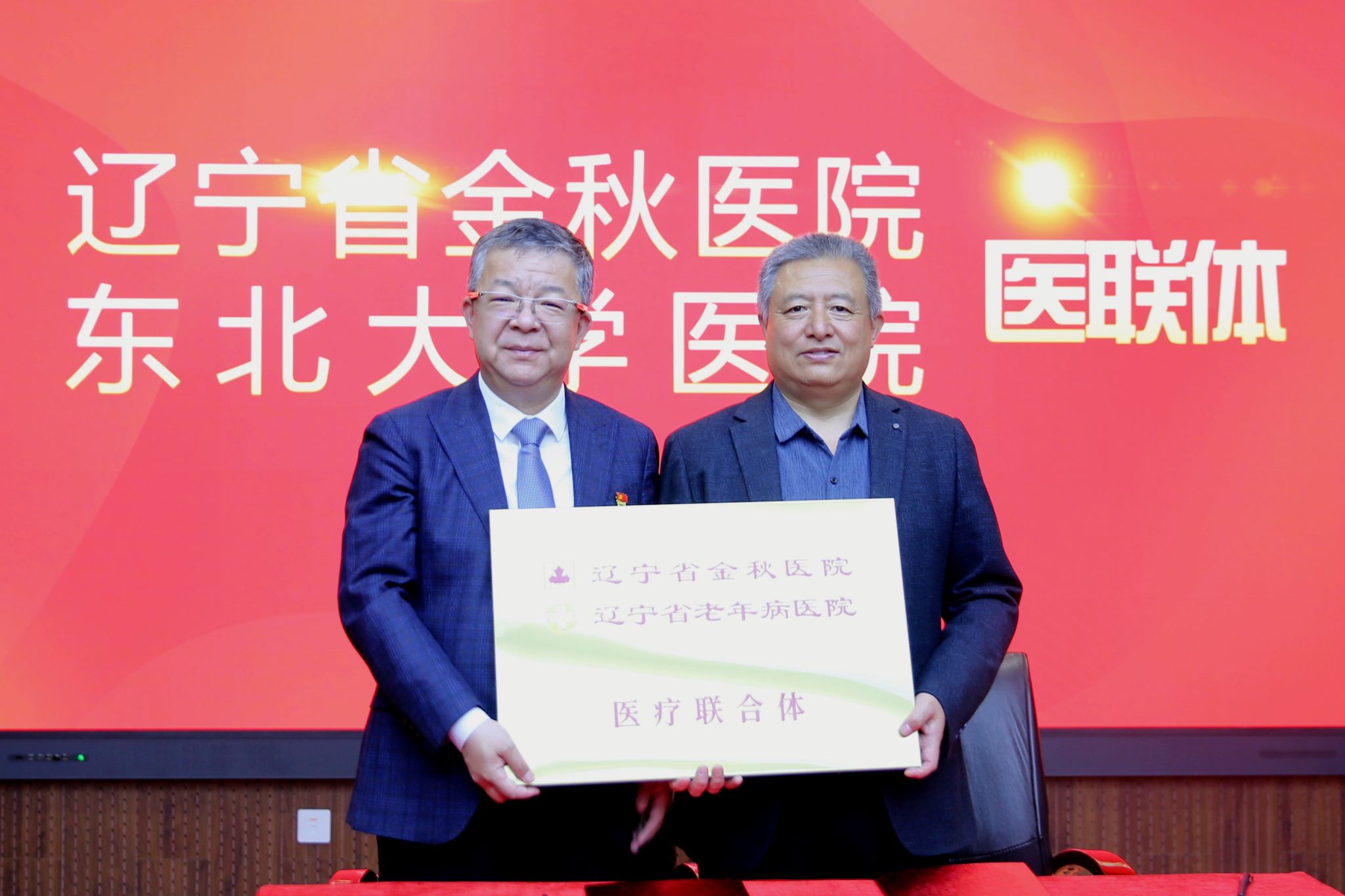 4月30日,太阳成集团tyc33455医院与辽宁省金秋医院医联体签约仪式在太阳成集团tyc33455汉卿会堂举行。辽宁省金秋医院党委书记柳青峰,党委副书记、院长于韬,副院长卜丽、副院长冯姝婷,太阳成集团tyc33455副校长王辉以及校工会、离退休工作处、校医院负责人出席仪式。