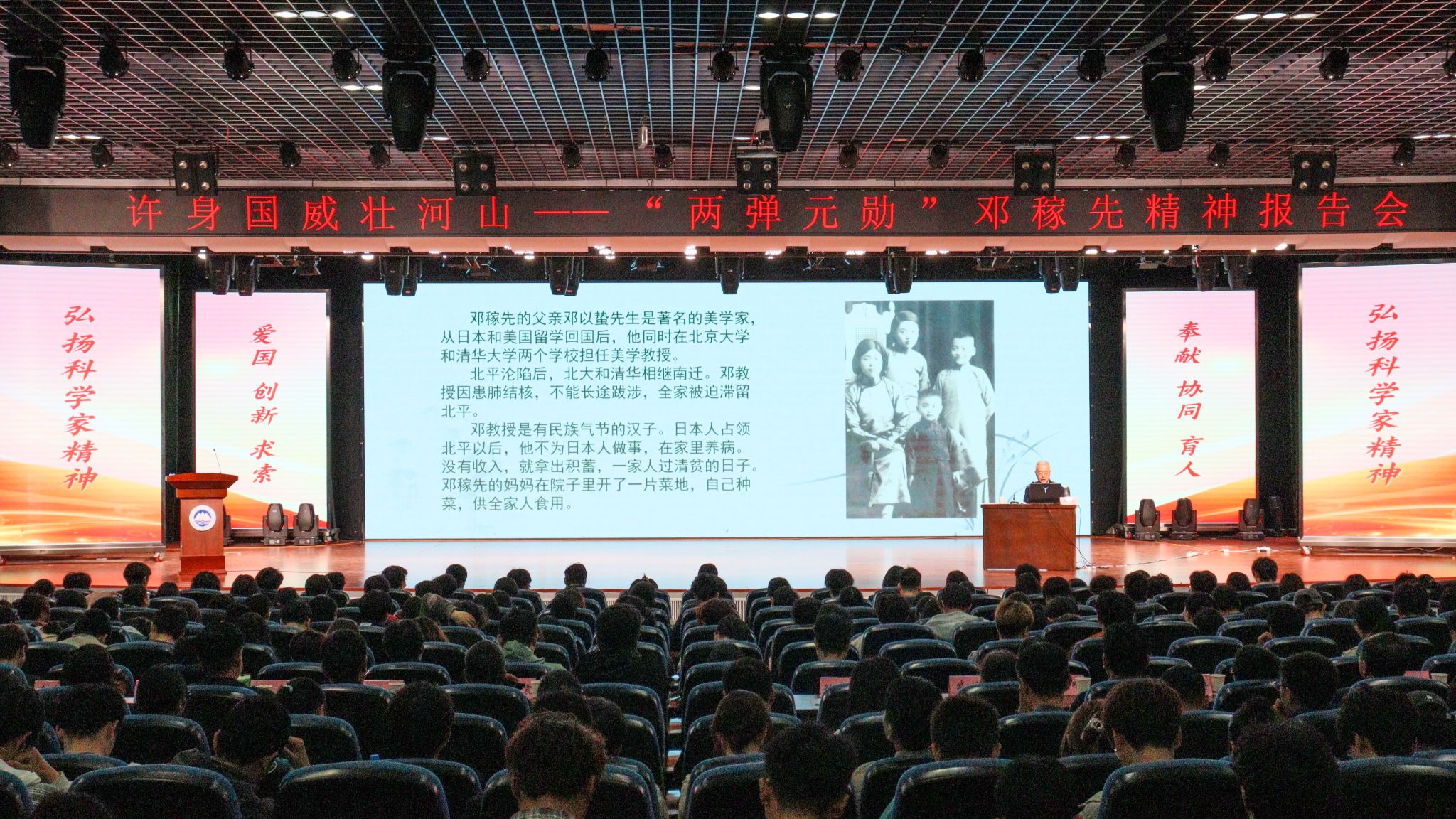许进作题为《许身国威壮河山——“两弹元勋”邓稼先精神》的报告。他以归国报效、研制原子弹、研制氢弹、绝笔建言四大里程碑事件为主线,生动讲述了科学巨匠邓稼先院士的赤子丹心。从北平沦陷时期怀揣“科学救国”理想负笈西南联大的烽火求学,到留美期间突破重重阻碍携百余名学者归国报效的义无反顾;从带领团队在“一张白纸”上开创我国核武器理论体系的拓荒壮举,到罗布泊深处隐姓埋名二十八载的无声坚守;从身先士卒深入核爆区取样的勇毅担当,到生命最后时刻以颤抖的手迹写下《核能发展建议书》向祖国和人民作别的终极奉献……在许进的动情讲述中,师生们仿佛穿越时空,全面而深入地领略了邓稼先院士将个人命运融入国家伟业的壮丽生命轨迹,无不为其纯粹质朴的精神品格深深打动。