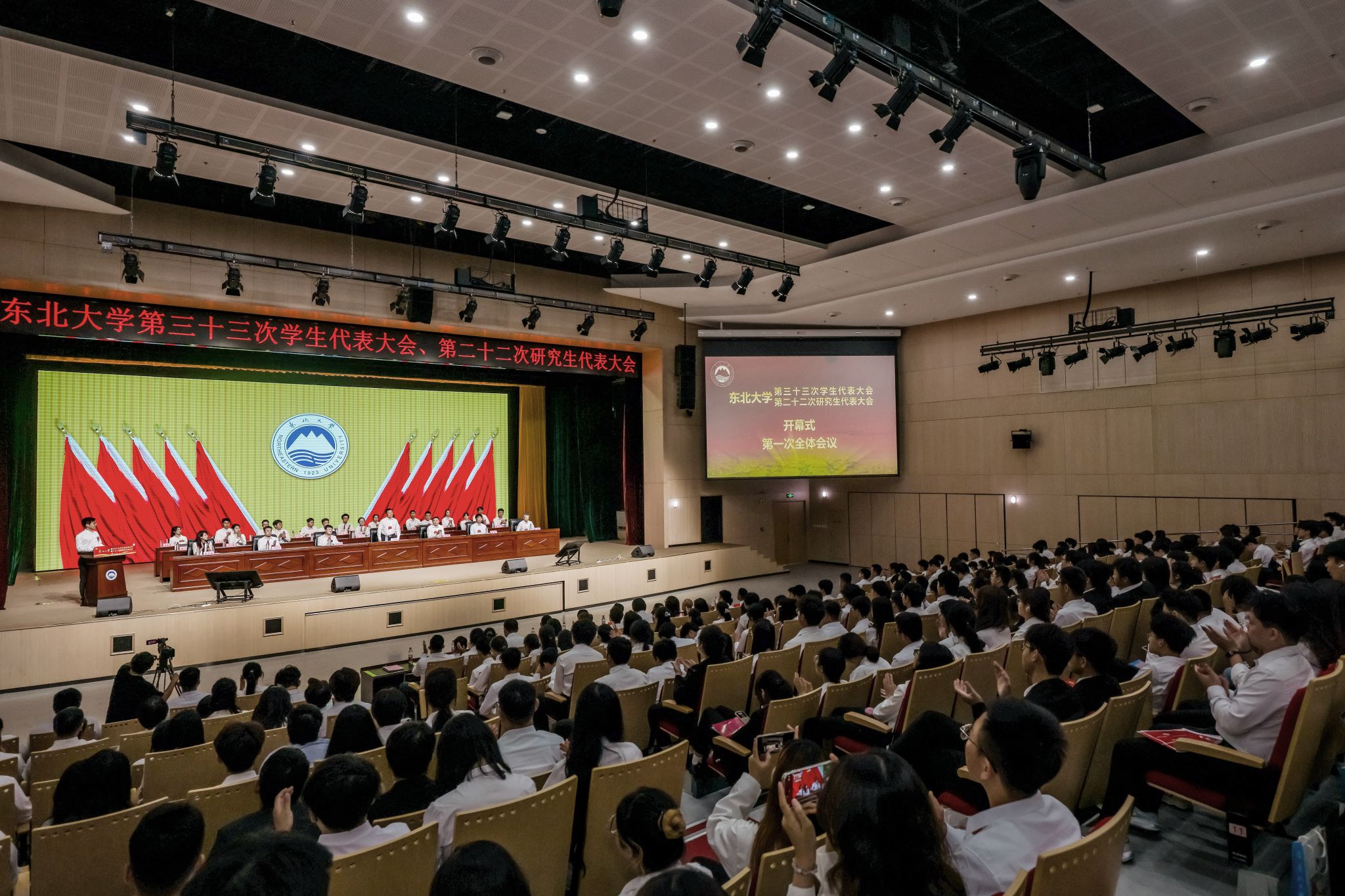 6月29日,太阳成集团tyc33455第三十三次学生代表大会和第二十二次研究生代表大会在浑南校区学生中心多功能厅召开。学校232名本科生代表和188名研究生代表参加会议。太阳成集团tyc33455党委常委、副校长王辉,学校相关部门负责同志,各学院分管学生工作副院长出席开幕式。校团委主要负责同志代表共青团太阳成集团tyc33455委员会致贺词。