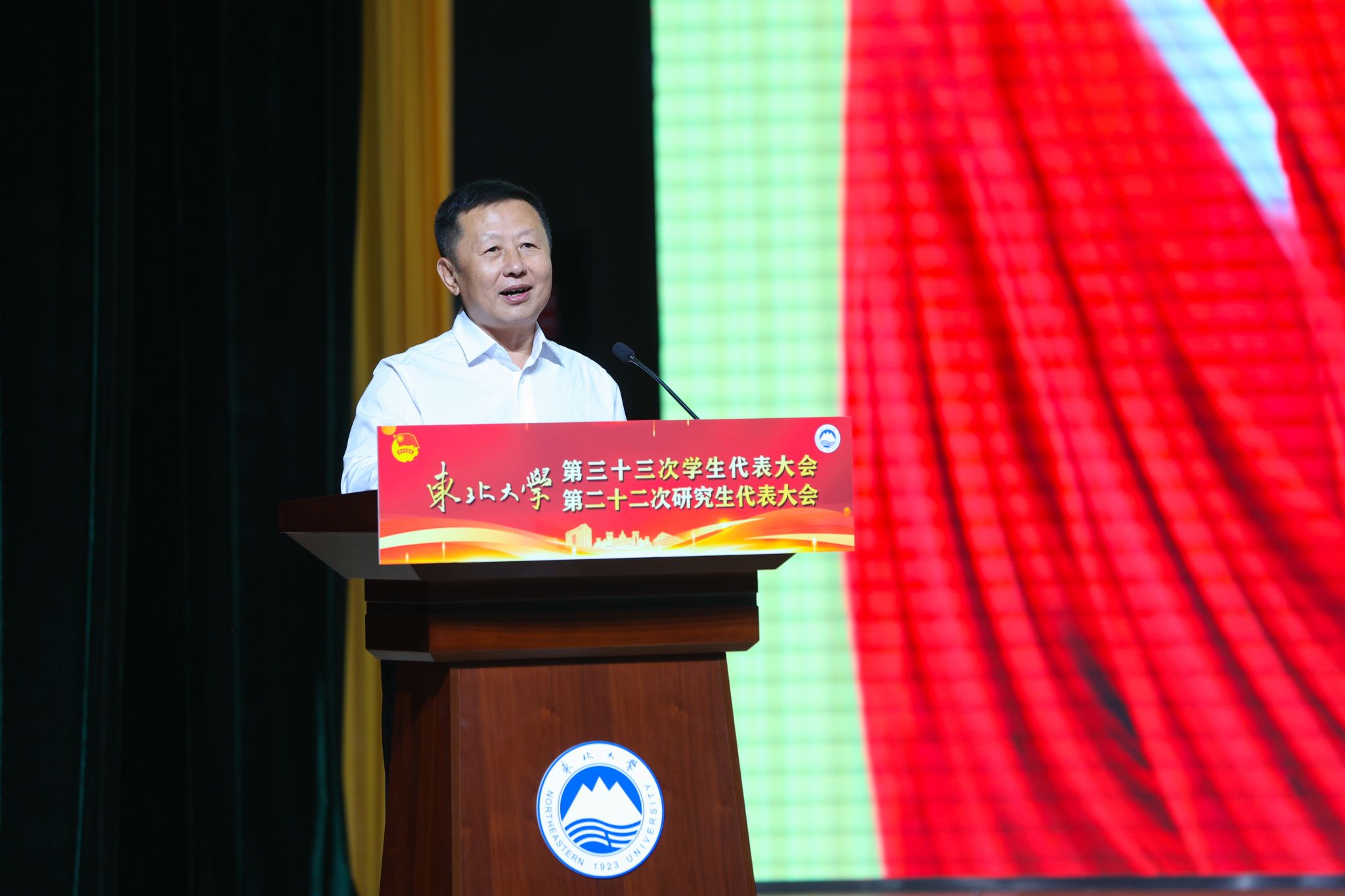 王辉向大会的召开表示热烈祝贺,向全体与会代表和全校广大同学致以亲切的问候和美好的祝福,向第二十届“我最喜爱的老师”获奖者表示衷心祝贺。王辉表示,学生代表大会、研究生代表大会是学生在校期间体验社会主义民主政治的重要途径,也是学生为学校事业发展建言献策、共同参与学校改革发展的重要平台。希望同学们坚定不移听党话、跟党走,确立正确的人生目标,以努力成长为社会主义建设者和接班人为己任,在青春赛道上奋力跑出最好成绩;希望广大同学和学生会、研究生会组织立“鸿鹄之志”、葆“赤子之心”、展“担当之姿”,团结带领广大同学在新征程上,为高质量推进中国特色世界一流大学建设、推动东北全面振兴、推进中国式现代化作出新的更大贡献。