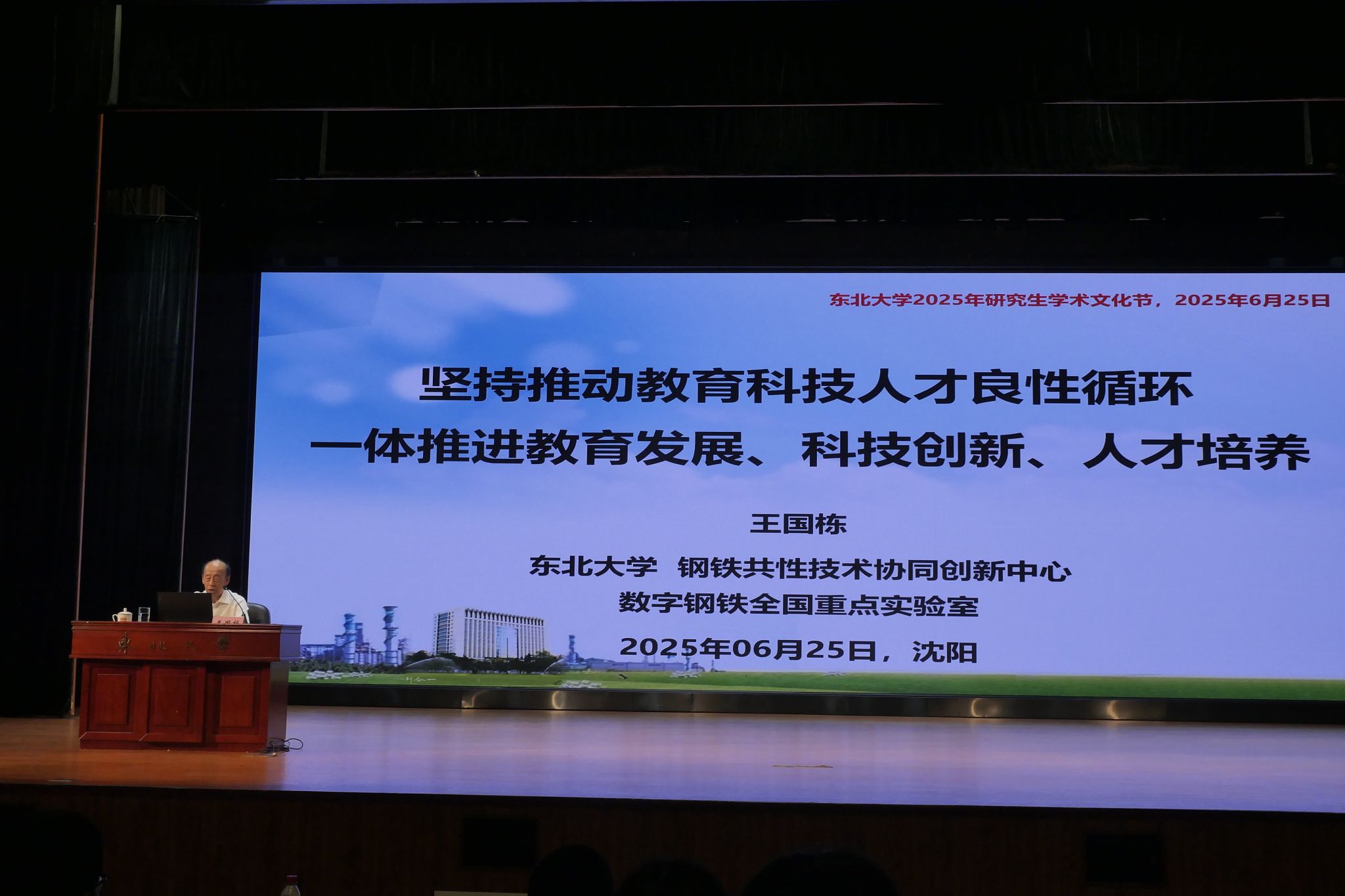 王国栋院士作题为《坚持推动教育科技人才良性循环 一体推进教育发展、科技创新、人才培养》的主旨报告,包括“顶天立地、筑梦中华、求真务实、成长成才”“审时度势,拥抱新时代;中国特色,颠覆旧世界”“与时俱进,持续攀高峰;思想解放,开辟新赛道”“全产业链协同创新,共享共荣共同发展”“推动教育科技人才良性循环”“寄语”等6部分。王国栋以习近平总书记在全国科技大会、国家科学技术奖励大会、两院院士大会上的讲话为指导,结合自身在钢铁材料领域的最新研究成果和科研育人经验,阐述了教育、科技、人才三位一体发展的战略意义。王国栋希望,广大研究生要珍惜数字时代带来的重大机遇,坚持四个面向,瞄准世界科技前沿和国民经济主战场,努力实现产学研深度融合、科技创新与产业创新深度融合、数字经济与实体经济深度融合,为实现中国式现代化伟大事业,努力拼搏,成长成才。