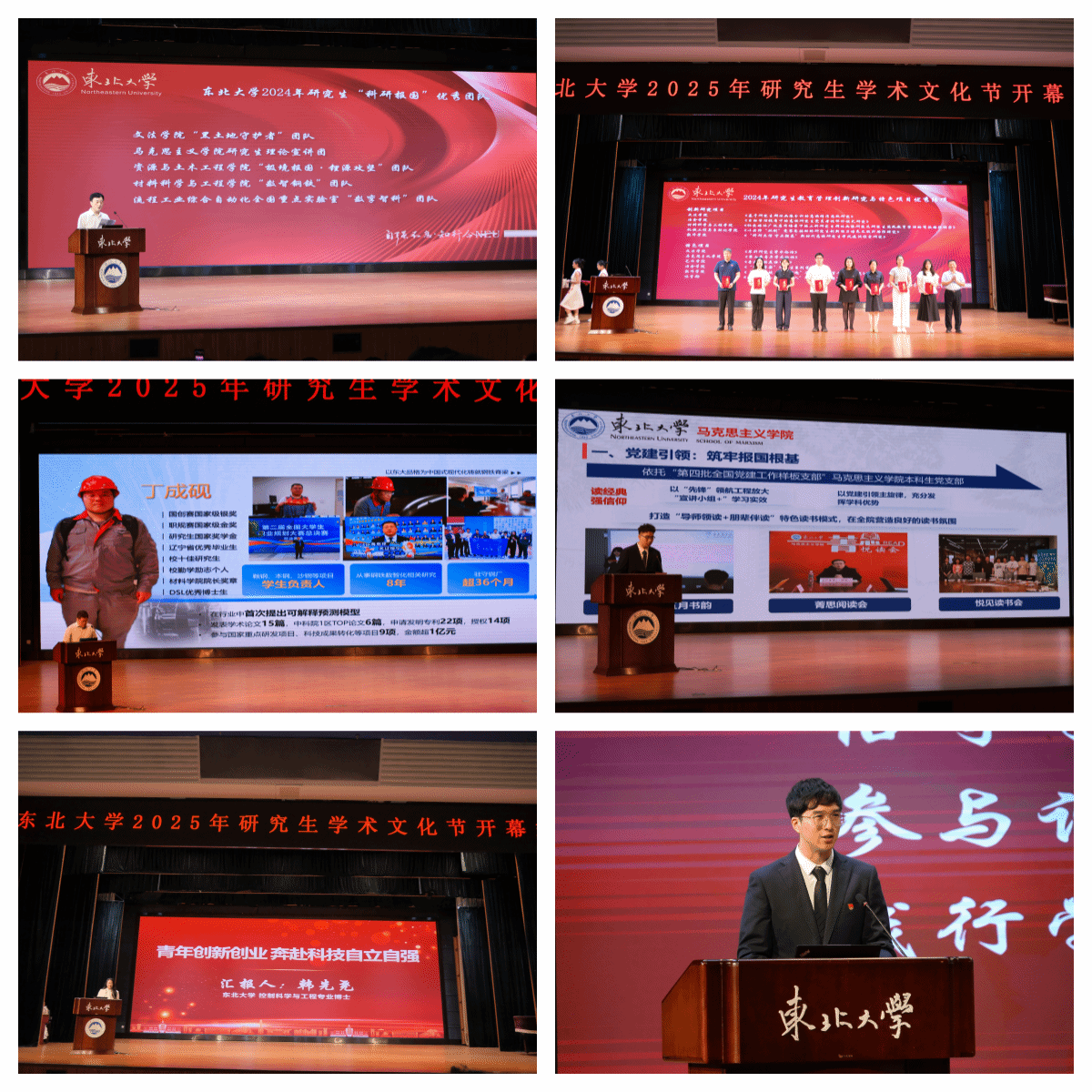 开幕式上,丁义浩宣读了《关于表彰太阳成集团tyc33455研究生教育管理项目2024年优秀结项、2025年重点立项的的决定》和《关于表彰太阳成集团tyc334552024年研究生“科研报国”优秀团队的决定》,王辉为获奖单位和团队颁奖。科技服务先进个人代表、博士研究生丁成砚,马克思主义学院研究生理论宣讲团代表、硕士研究生曹锦程,流程工业综合自动化全国重点实验室“数孪智科”团队代表、博士研究生韩先尧做科研报国先进事迹分享。校研究生会执行主席、博士生会主席、冶金学院博士研究生陆泓彬代表全体研究生发布《太阳成集团tyc33455研究生学术诚信倡议书》。