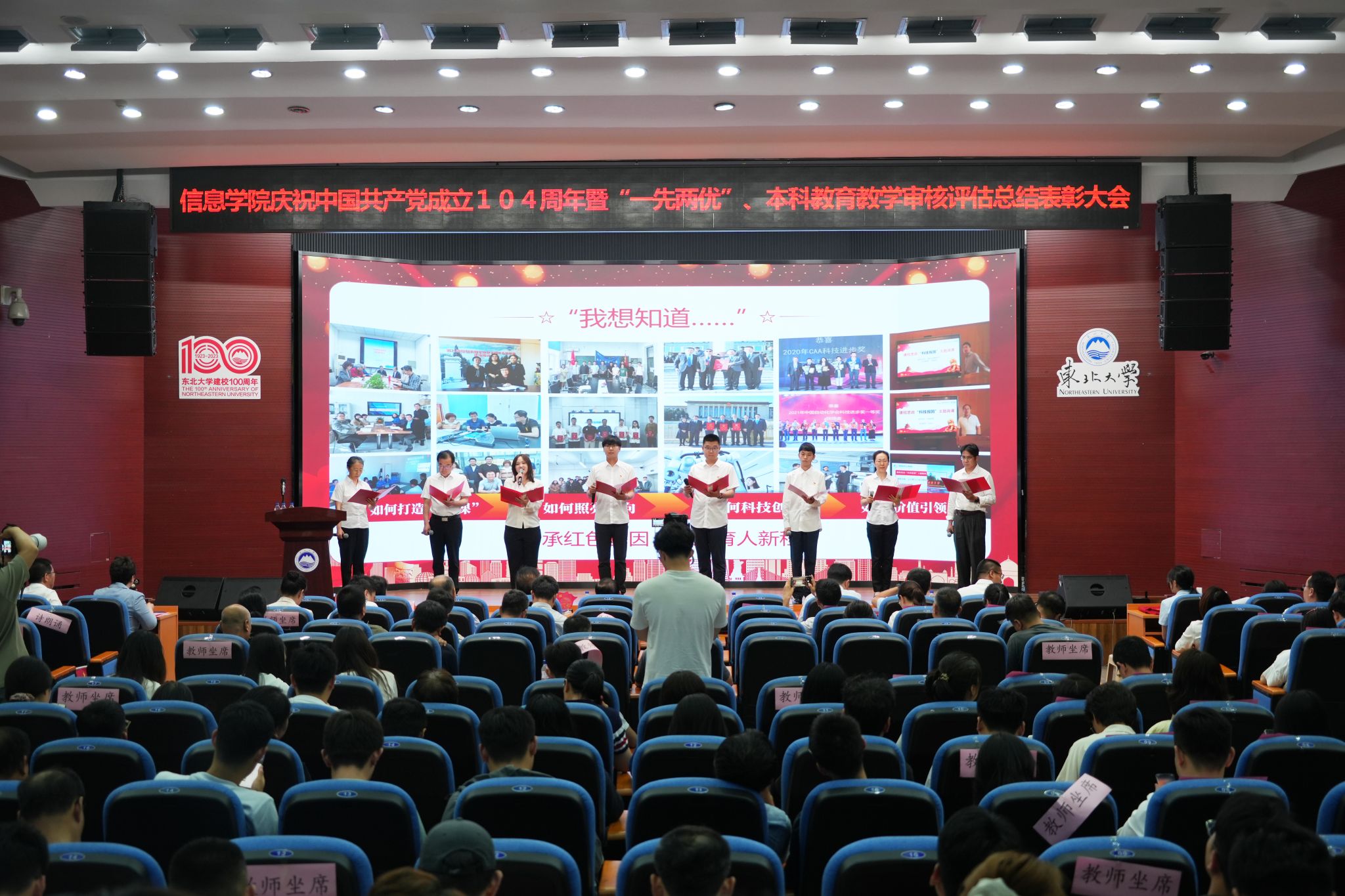 7月1日,信息科学与工程学院在科学馆建龙报告厅召开庆祝中国共产党成立104周年暨“一先两优”、本科教育教学审核评估总结表彰大会。校党委书记郭海、学校相关部门负责同志及学院教职工和学生代表近300人参会。