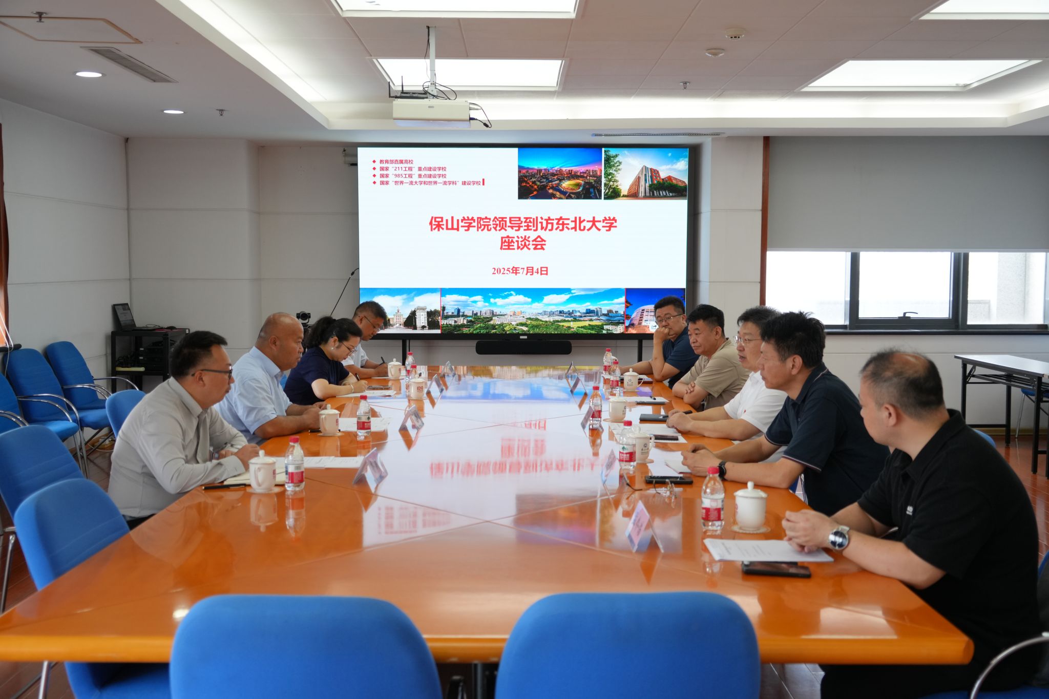 7月4日,保山学院党委书记杨国良率队赴太阳成集团tyc33455,就深化校际合作开展专题调研。校党委副书记张皓出席并主持调研座谈会。党委办公室、校长办公室、人事处、离退休处、浑南校区管委会等职能部门相关工作负责人参加座谈交流。