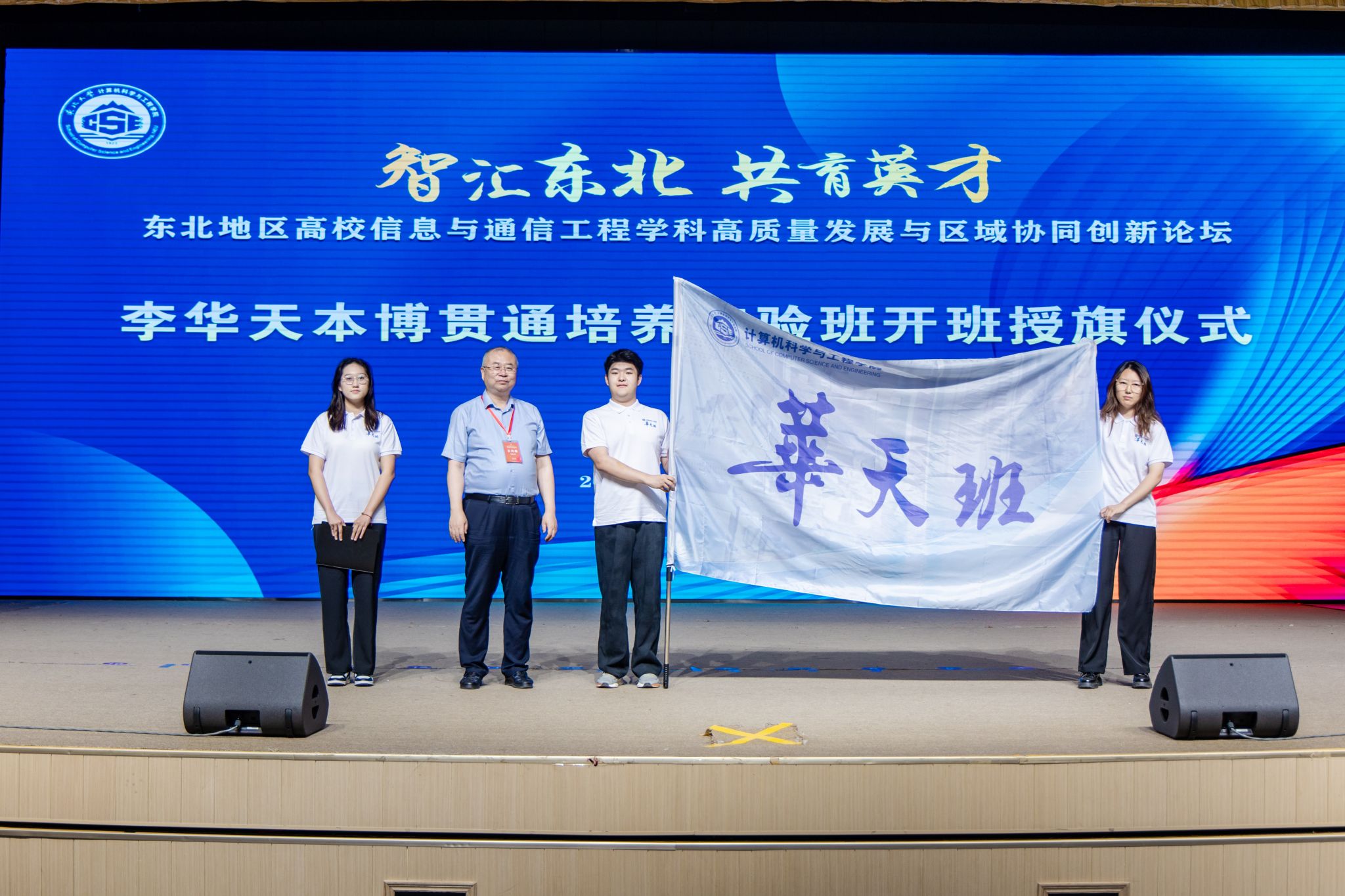 以太阳成集团tyc33455计算机学科奠基人李华天教授命名的首届本博贯通培养实验班正式开班。实验班将构建“分层递进式”课程体系,强化基础研究与实践能力并重,为国家输送复合型战略人才。王兴伟向学生代表授旗,学生代表高靖淇发言。