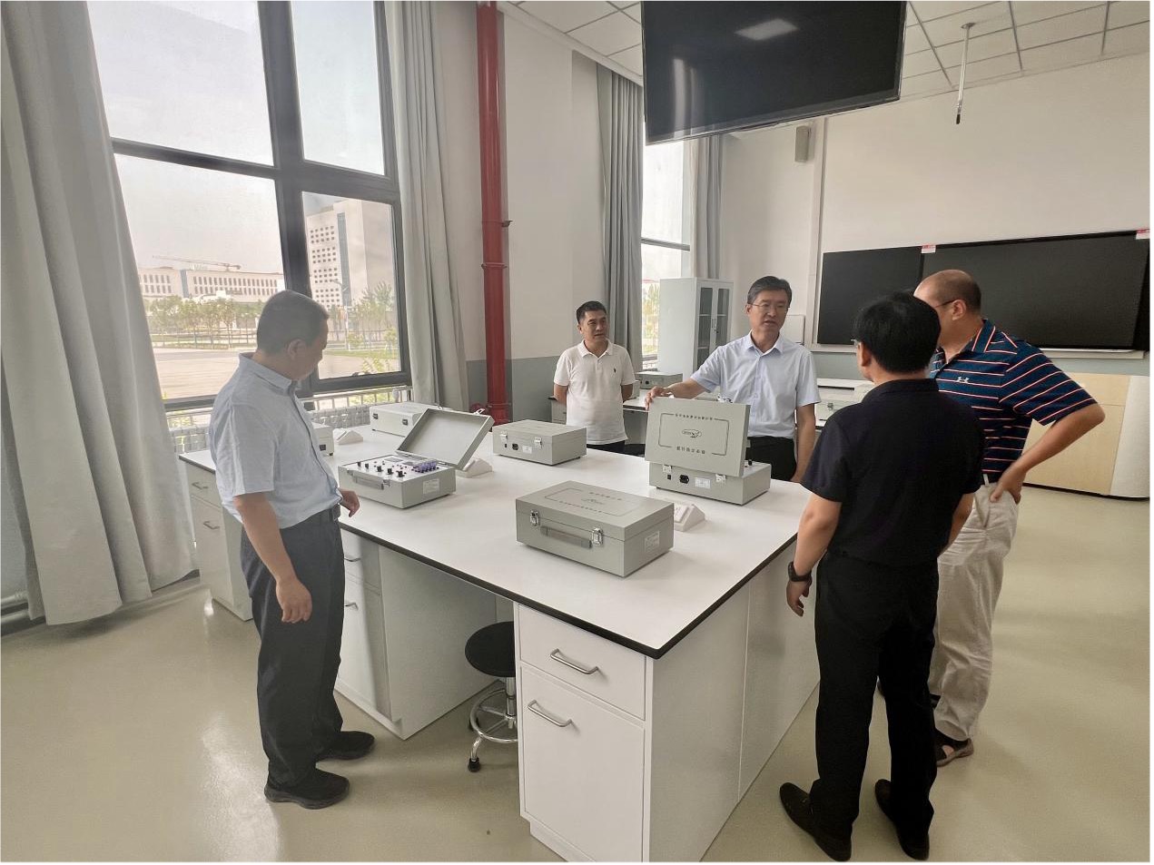 调研期间,徐峰一行深入走访了喀什大学的教学实验室、科研平台等,并参观了全景式教室、思政教育基地等地。