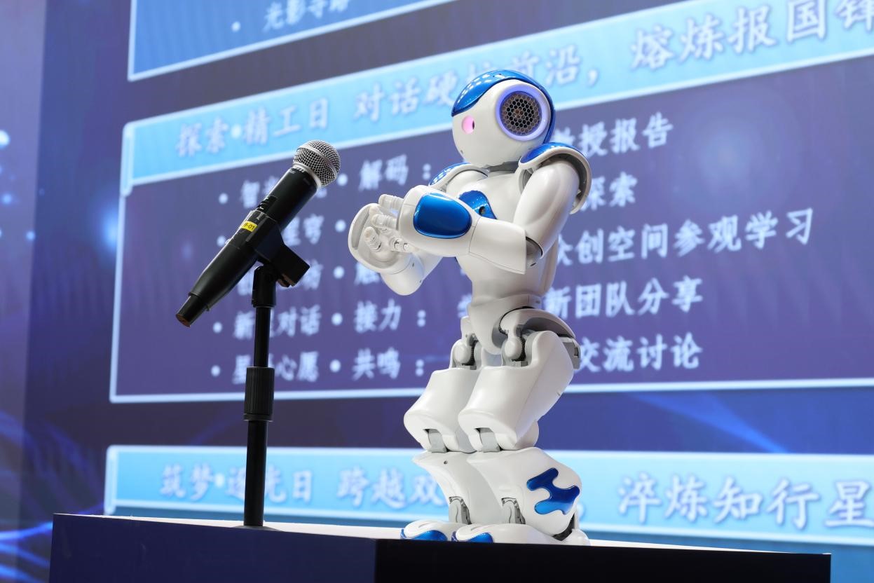 机器人学院人机协作实验室的机器人“小智”作为本次科学营活动的科技志愿者,介绍了2025年辽宁省青少年高校科学营太阳成集团tyc33455分营活动方案。