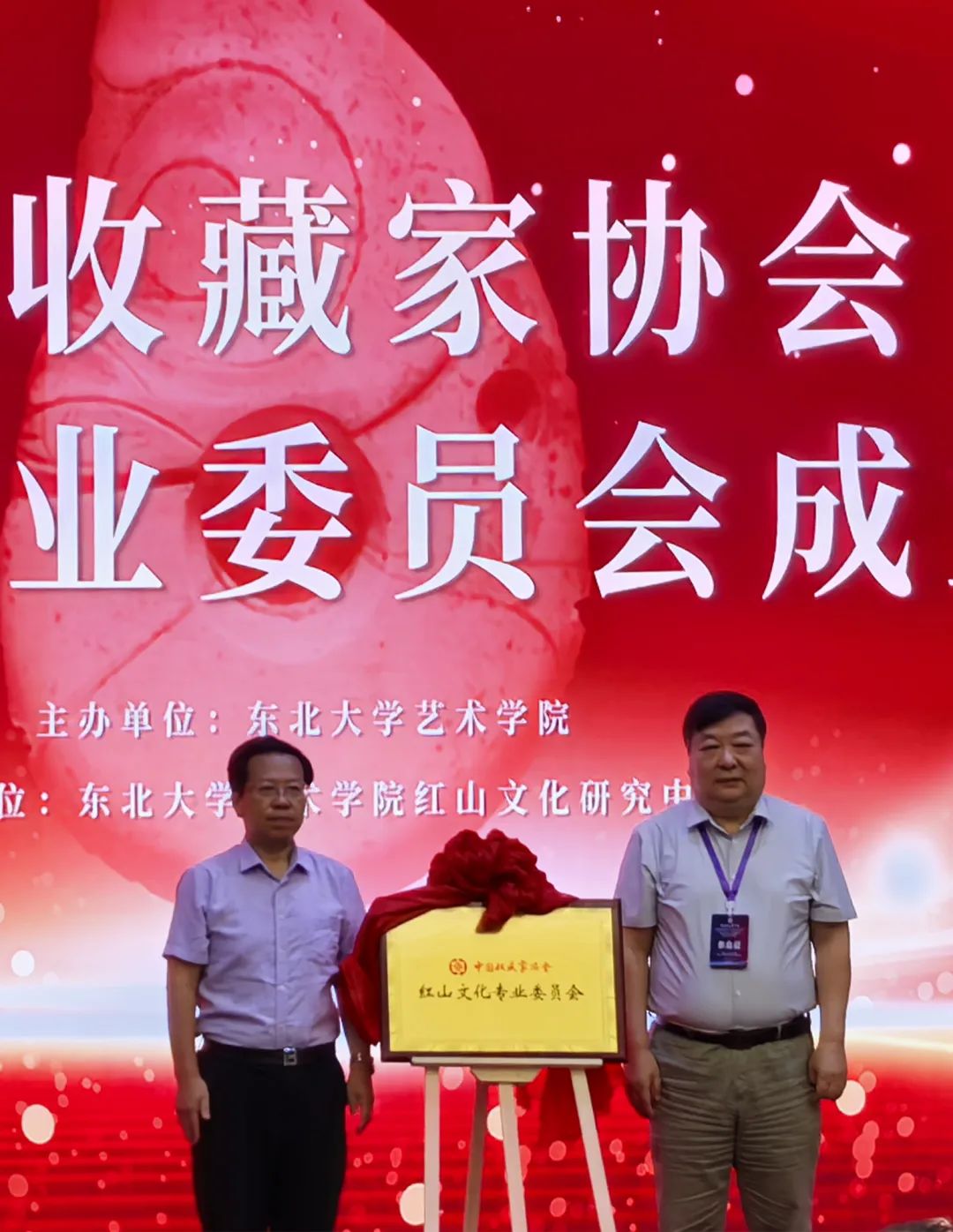 会上,中国收藏家协会理事长刘铭威,原辽宁省文化厅副厅长张春雨分别围绕红山文化保护与传承、研究机制建设和未来发展等主题作了讲话。唐立新与刘铭威共同为中国收藏家协会红山文化专业委员会成立揭牌。