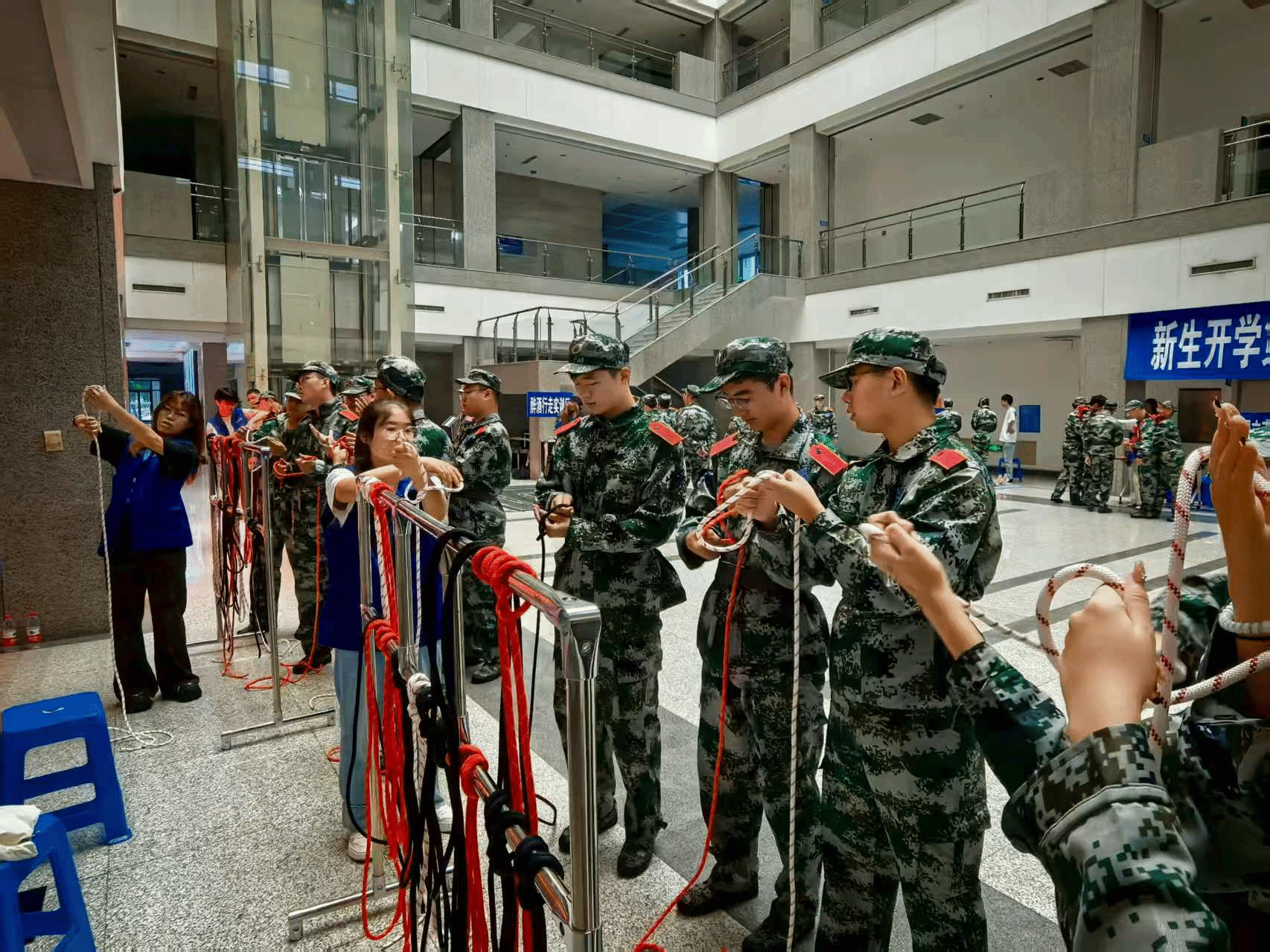 结绳实训区的绳子在新生手中翻飞,公安处的小费老师正演示“连续单结”的打法,“这个绳结可以增加摩擦力,帮助我们缓降”“看似打结很容易,其实一点都不简单。绳子虽小,关键时刻能救命。”同学们互相拉扯着绳结,比比谁打的结更结实。