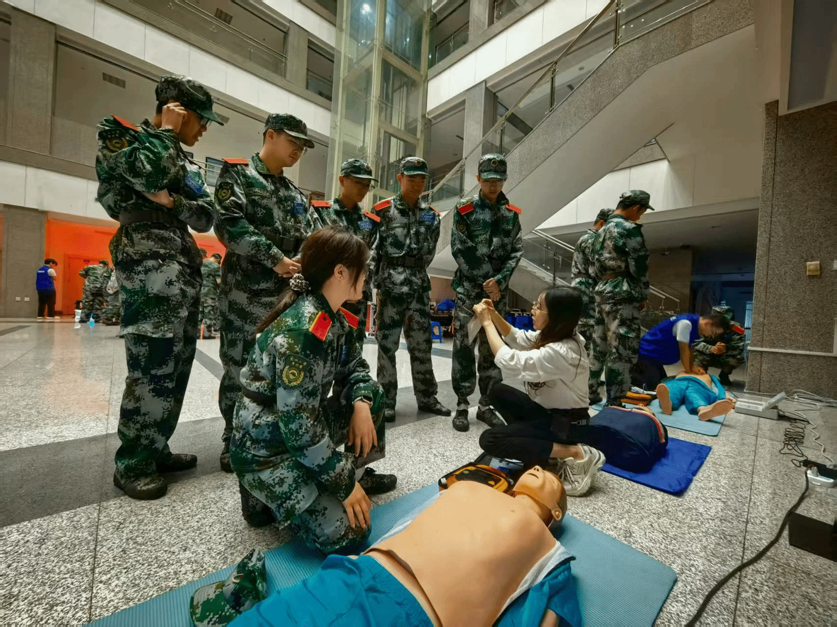 急救实训区则上演着“生死时速”。在心肺复苏(CPR)操作台上,校医院的史老师正在指导新生按压“模拟人”胸部:“双手交叠,掌根对准连线中点,每分钟100-120次,深度5-6厘米……”她边说边示范,额头上渗出细汗。“按压30次、人工呼吸2次,一组下来胳膊都酸了,但想到这是‘黄金四分钟’的救命技能,再累也值得。”新生吴同学说。