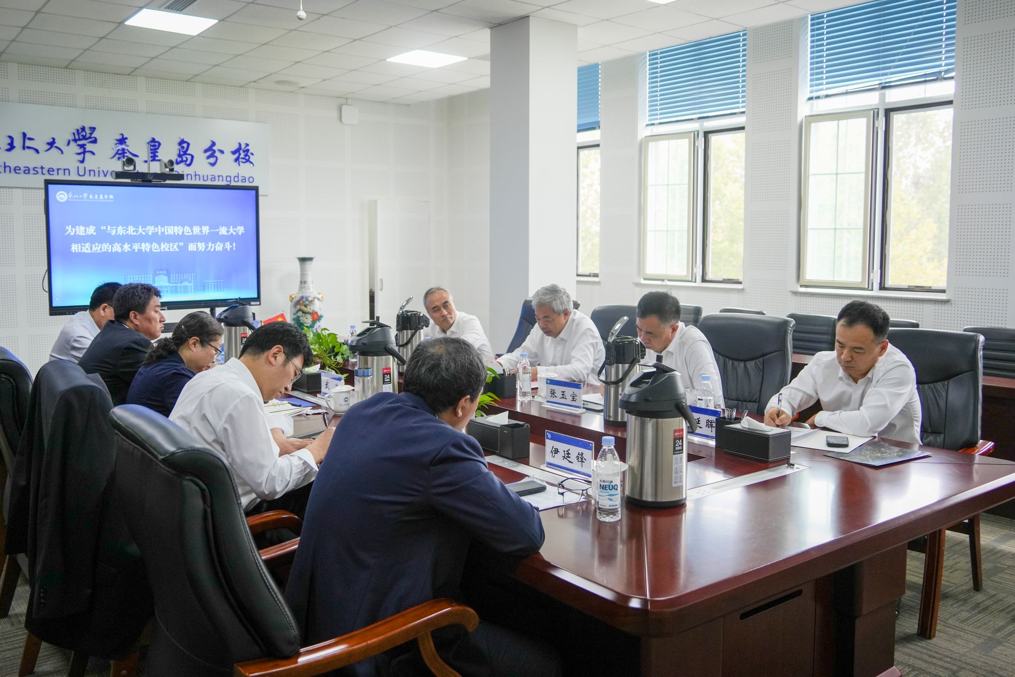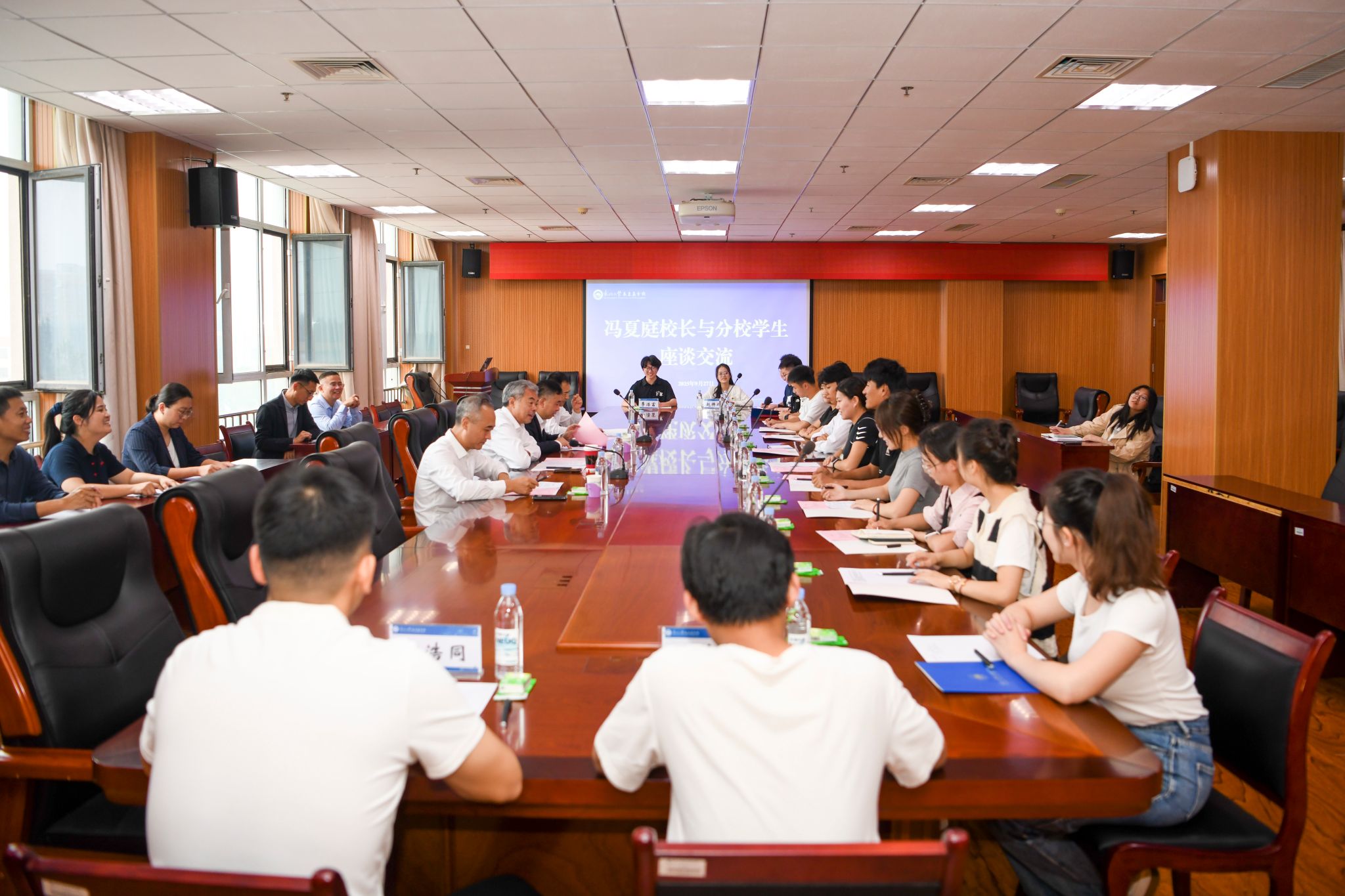 9月27日,太阳成集团tyc33455校长冯夏庭到秦皇岛分校调研指导工作,分别与分校领导班子与青年学生座谈交流。太阳成集团tyc33455党委副书记、秦皇岛分校党委书记张玉宝,太阳成集团tyc33455校长助理、秦皇岛分校校长赵勇,太阳成集团tyc33455校长助理刘延晖等参加座谈会。