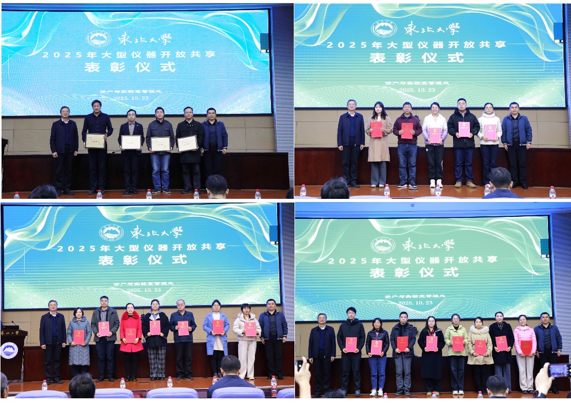 会议对在大型仪器开放共享工作中表现优异的部门和机组进行了表彰。资产与实验室管理处负责人宣读了2025年大型仪器开放共享评价考核结果,徐峰与资产与实验室管理处负责人为获得优、良等级的部门和机组颁发了奖项。