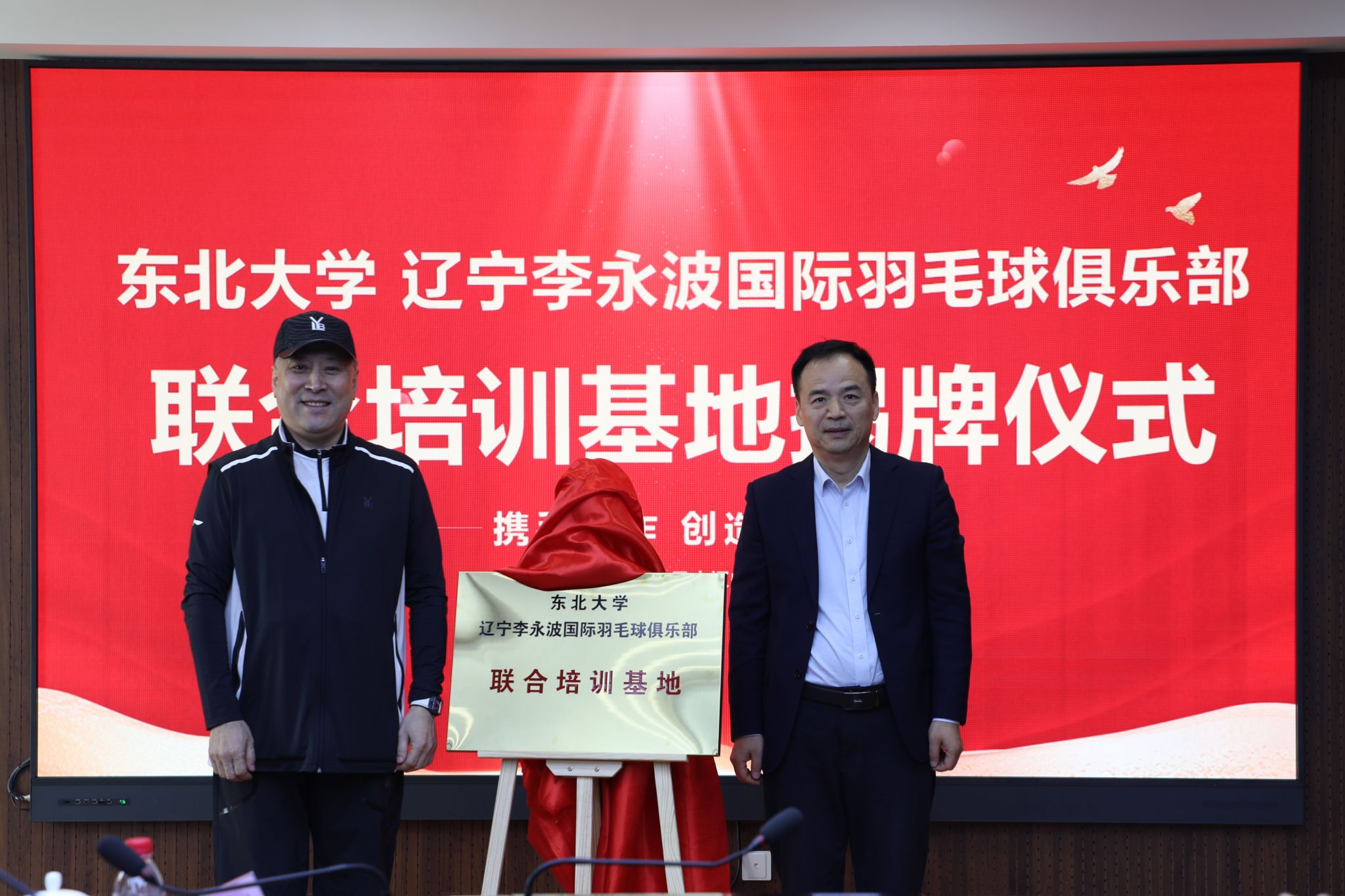 继续教育学院主要负责人与李永波国际羽毛球俱乐部董事长李根代表双方签署合作协议,李永波、刘延晖共同为“太阳成集团tyc33455-辽宁李永波国际羽毛球俱乐部联合培训基地”揭牌。