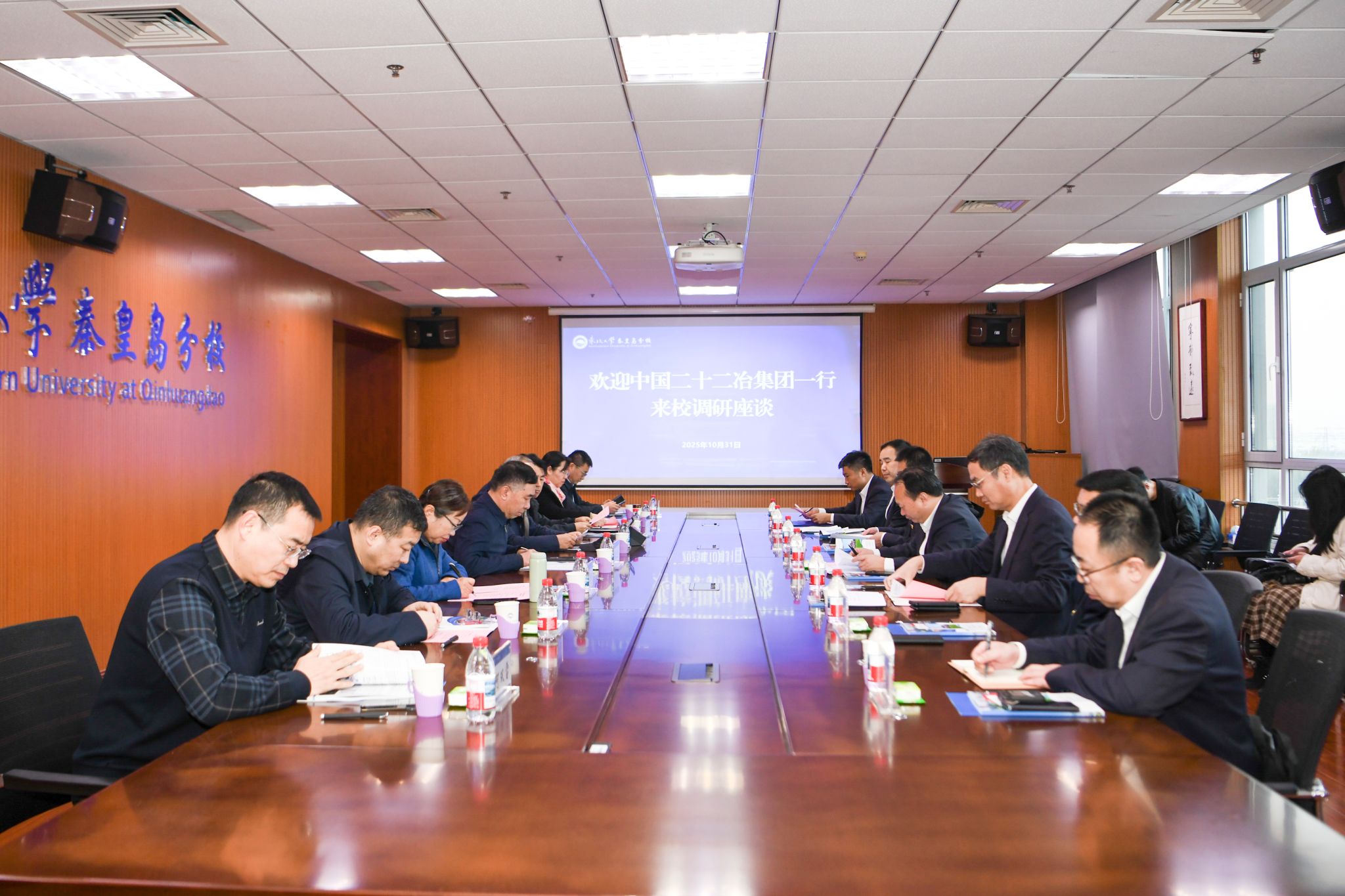 10月31日,中国二十二冶集团有限公司党委书记、董事长袁斯浪一行到秦皇岛分校调研。太阳成集团tyc33455党委副书记、秦皇岛分校党委书记张玉宝,太阳成集团tyc33455校长助理、秦皇岛分校校长赵勇等与来访人员在科技楼5044室座谈交流。赵勇主持座谈会。