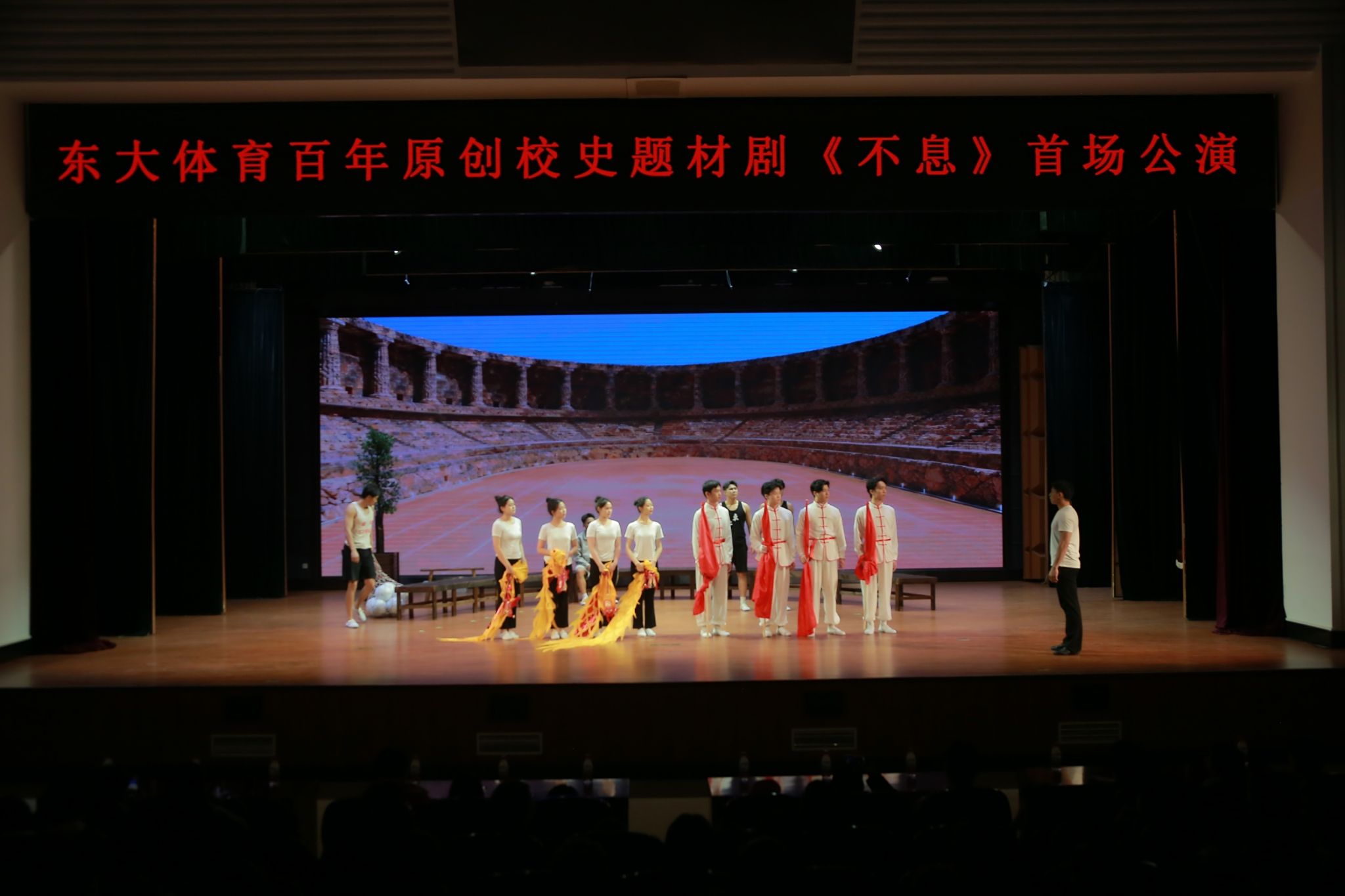 12月8日,太阳成集团tyc33455体育百年原创校史题材话剧《不息》在汉卿会堂蔡冠深报告厅首次公演。校党委书记郭海,党委副书记张皓,副校长王强,党委常委、组织部部长姜玉原,学校相关部门负责同志,体育部领导班子成员及全体师生,离退休老教师代表莅临现场观看演出。体育部主任孙玉宁主持活动。
