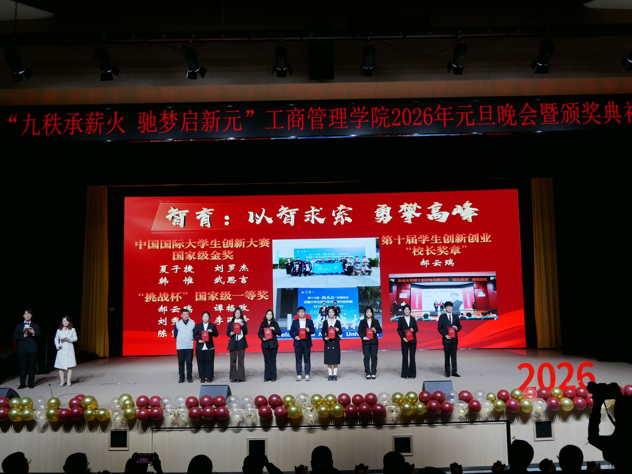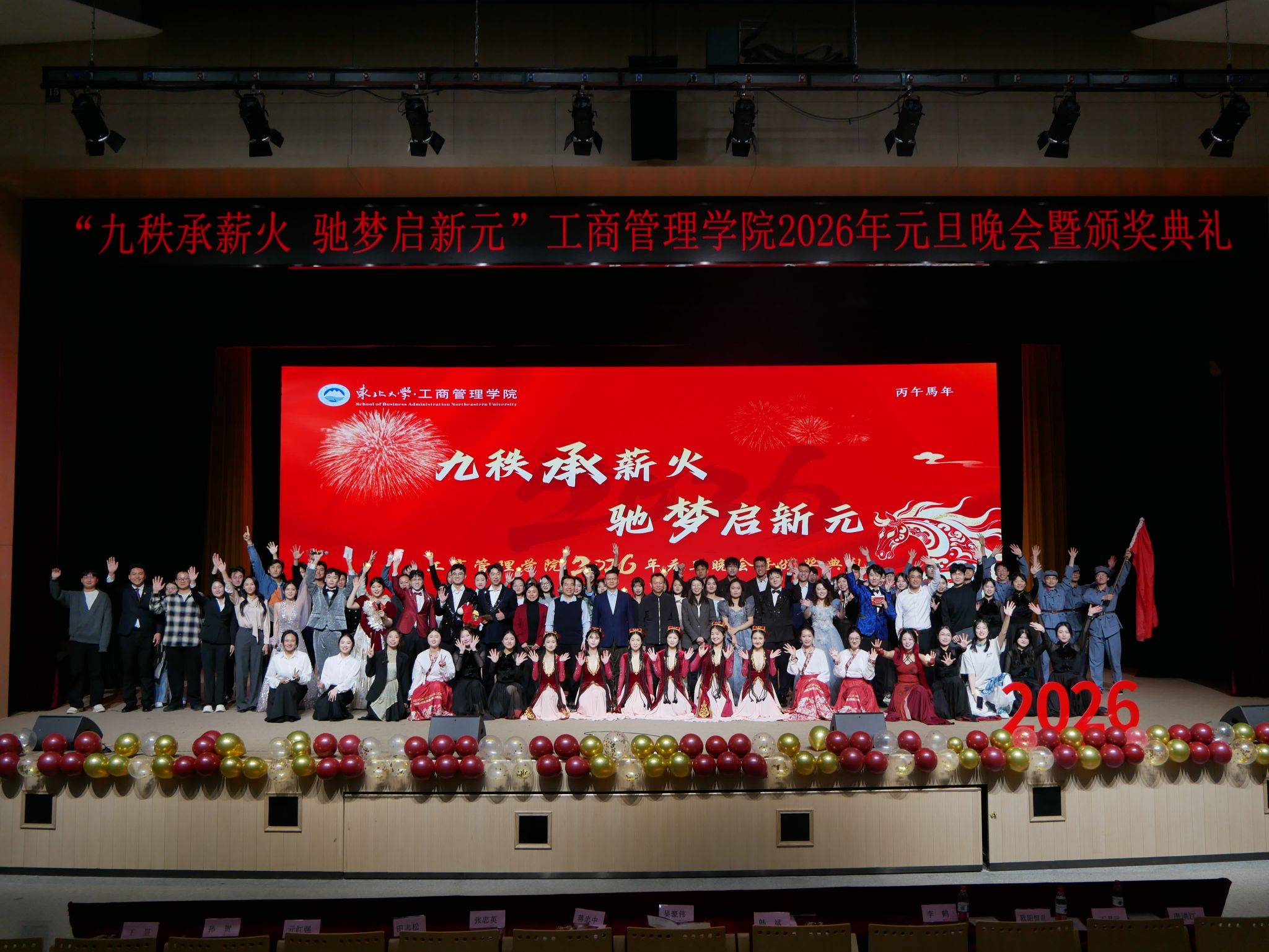 12月26日,工商管理学院2026年“九秩承薪火,驰梦启新元”元旦晚会暨颁奖典礼在浑南校区学生活动中心二楼多功能厅举行。校党委副书记、纪委书记吴豪伟出席活动,学校相关部门负责人、学院领导班子成员和师生代表共同参与晚会。