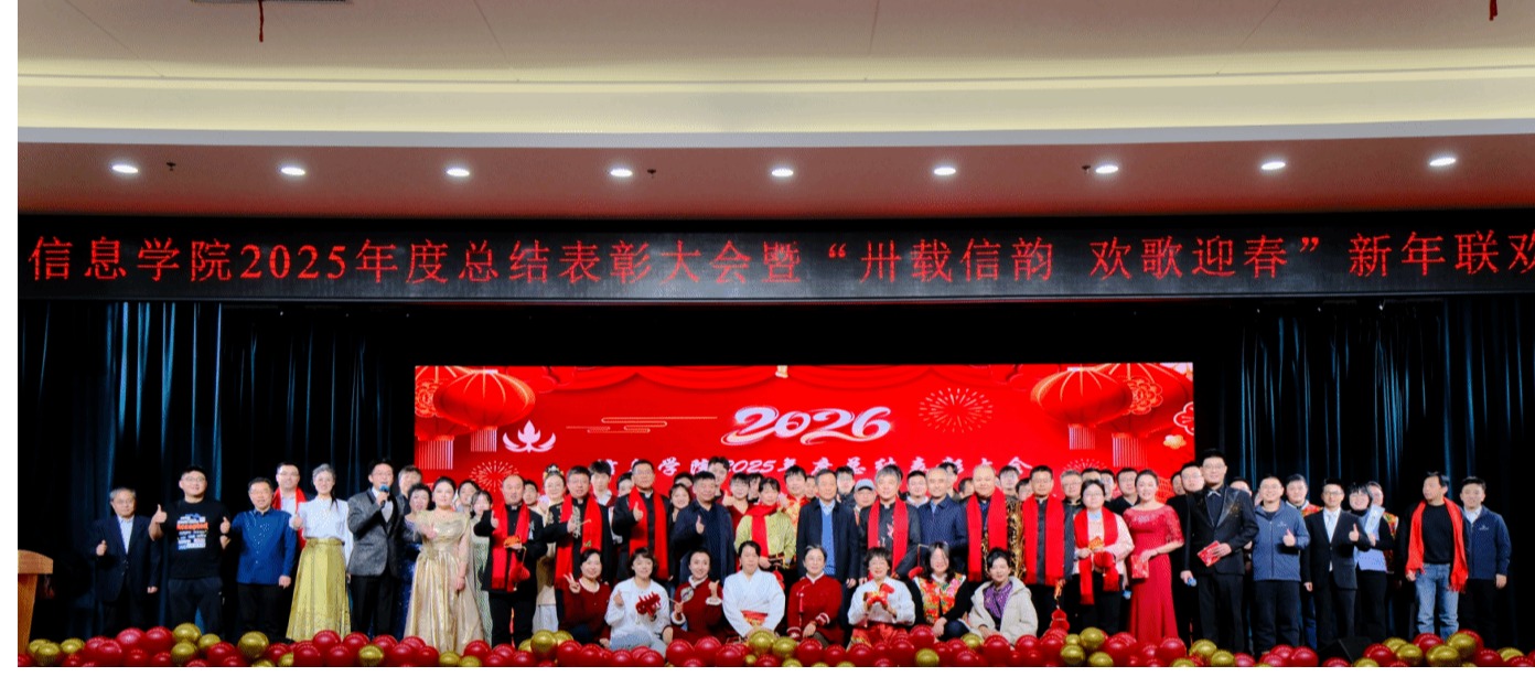 会上宣读了《信息学院关于表彰2025年度先进集体和个人的决定》。学院领导及特邀嘉宾为获奖集体和个人颁奖,现场掌声不断,气氛隆重而热烈。