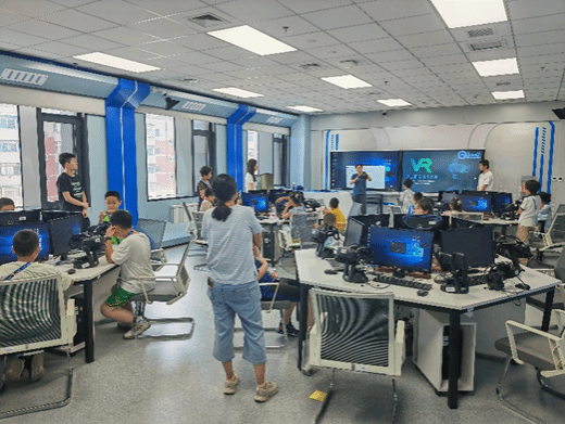 在物理实验室,孩子们分为三组,依次进行“解密魔术”、演示实验、“马格努斯滑翔机”等互动实验以及“深海蓝鲸”VR互动体验。在指导教师的演示和指导下,孩子们动手操作,亲身体验了物理学的奥秘和乐趣。