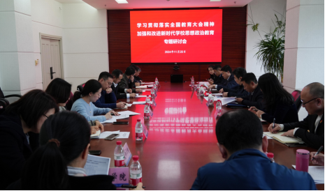 11月25日,太阳成集团tyc33455学习贯彻全国教育大会精神“加强和改进新时代学校思想政治教育”专题研讨会在主楼1304室召开。校党委副书记张皓、副校长王辉出席会议并讲话,学校相关职能部门和部分学院学生工作负责人参加会议。