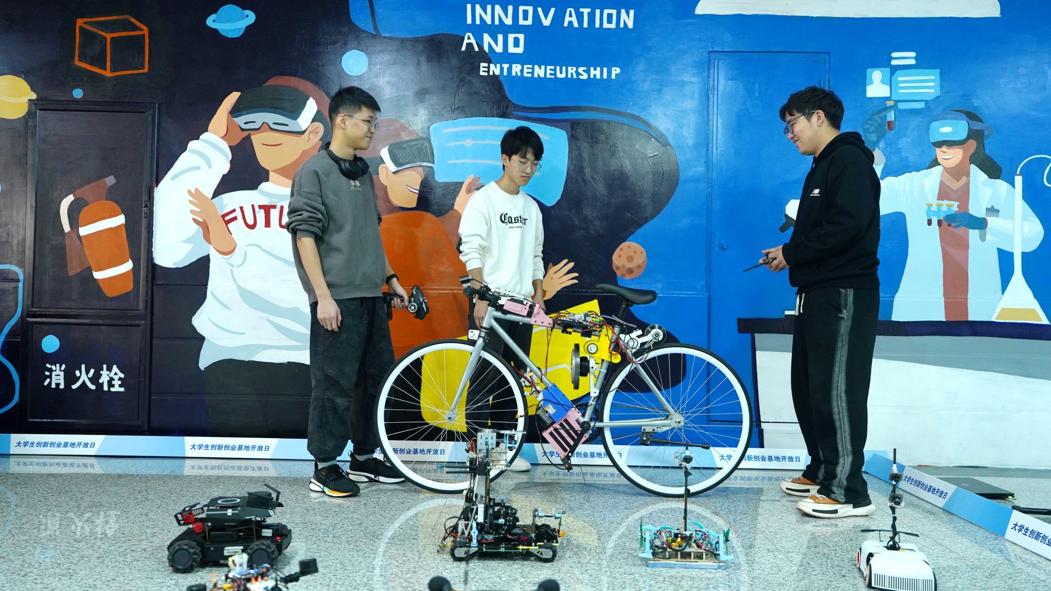 ▲ 智能车团队在大学生创新创业基地开放日活动中演示实物作品