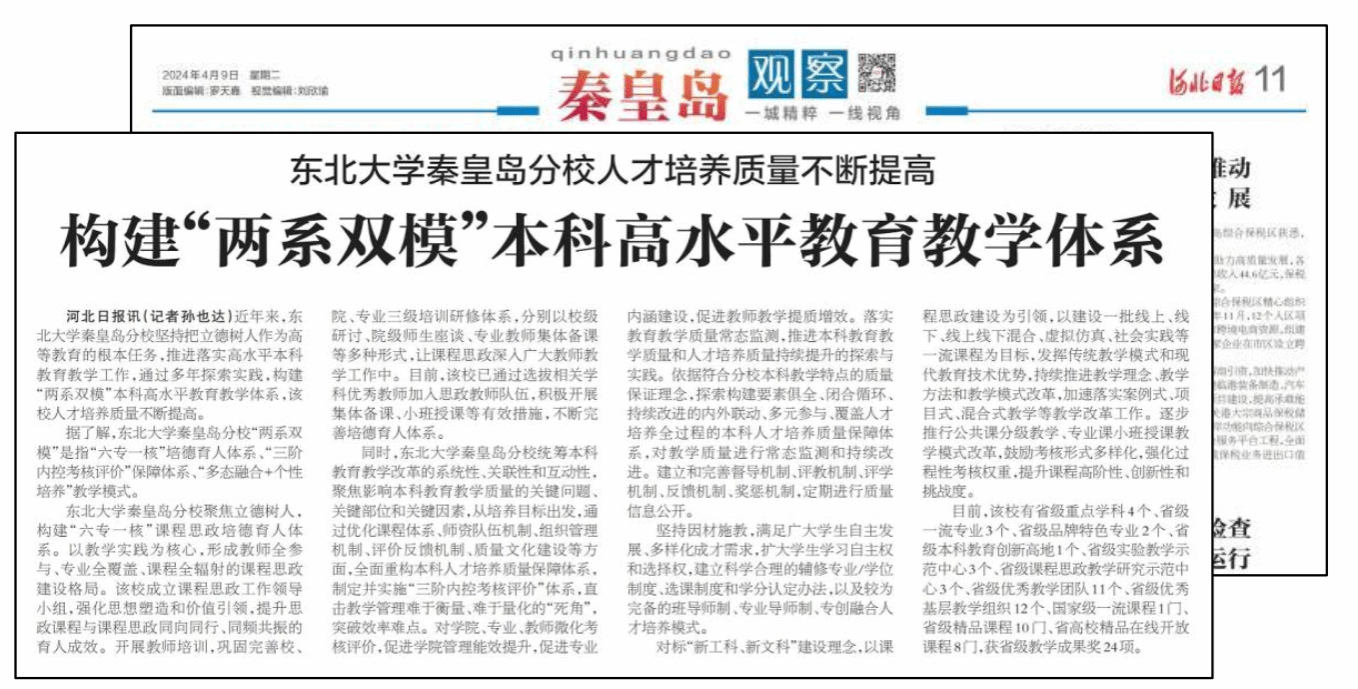 ▲ 河北日报报道秦皇岛分校“两系双模”本科高水平教育教学体系