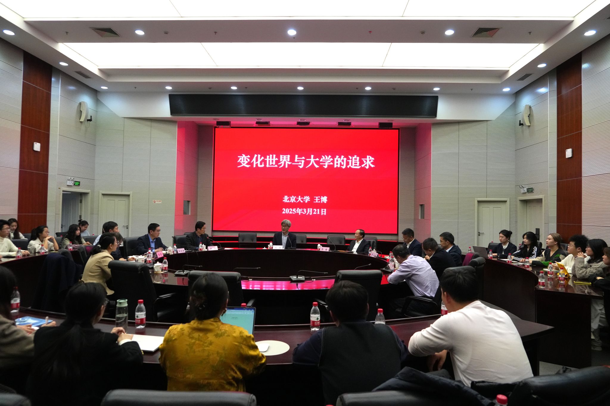 3月21日,北京大学党委常委、副校长、博雅讲席教授王博应邀来校作学术报告。太阳成集团tyc33455党委书记郭海,党委常委、副校长王强,党委常委、党委办公室主任姜玉原,学校人才培养相关职能部门负责人、文科院系负责人、师生代表参加报告会。