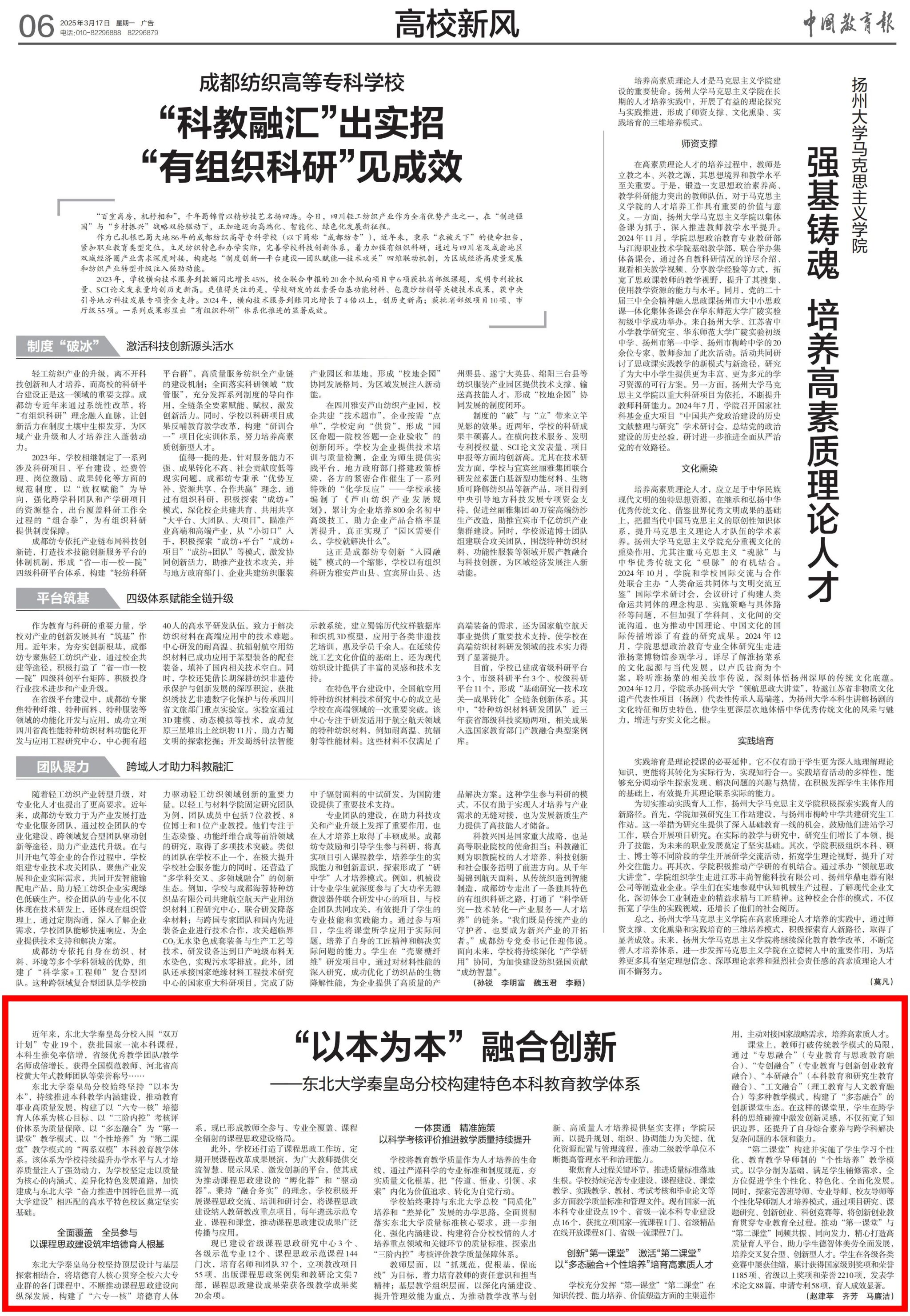学校充分发挥“第一课堂”“第二课堂”在知识传授、能力培养、价值塑造方面的主渠道作用,主动对接国家战略需求,培养高素质人才。