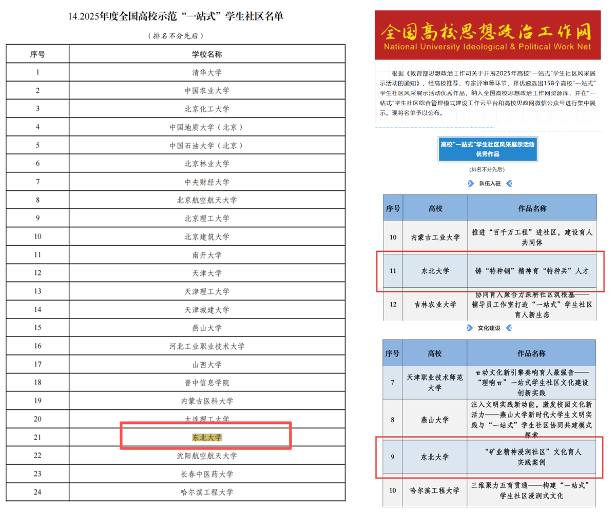 示范效应凸显。学校先后入选全国首批“一站式”学生社区综合管理模式建设试点高校、首批全国高校示范“一站式”学生社区、首批辽宁省“一站式”学生社区综合管理模式建设示范高校名单;连续3年荣获高校“一站式”学生社区风采展示活动优秀成果共计6项,书香社区建设相关项目获“悦读青春”全国百场特色活动等20余项荣誉。