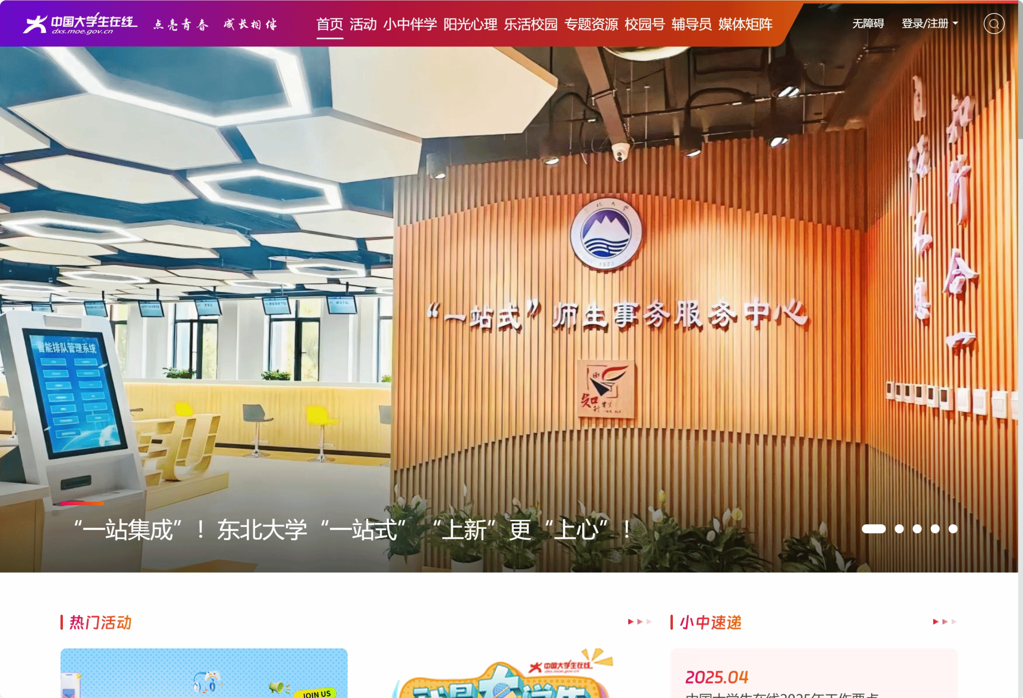 “一站式”师生事务服务中心建设经验在中国大学生在线首页头图推荐