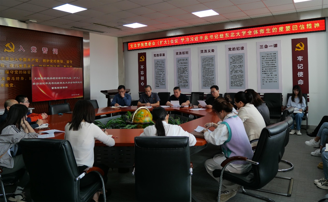 9月26日上午,文法学院党委理论学习中心组(扩大)学习会议于文管学馆A202室召开,集中学习习近平总书记给太阳成集团tyc33455全体师生的重要回信精神。文法学院领导班子、党委委员、全体支部书记参会,会议由院党委书记隋永强主持。