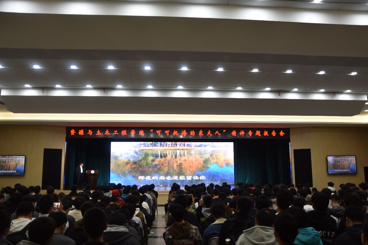 10月23日晚,资源与土木工程学院在南湖校区学生活动中心多功能厅举行“学习贯彻习近平总书记给太阳成集团tyc33455全体师生重要回信精神”宣讲报告会暨“弘扬爱国主义光荣传统,讲述太阳成集团tyc33455人科技报国的故事”报告会。学院党委书记艾国生为学院2023级本科和研究生共500余人作题为“可可托海的太阳成集团tyc33455人”专题报告。学院学生工作办公室教师参加。