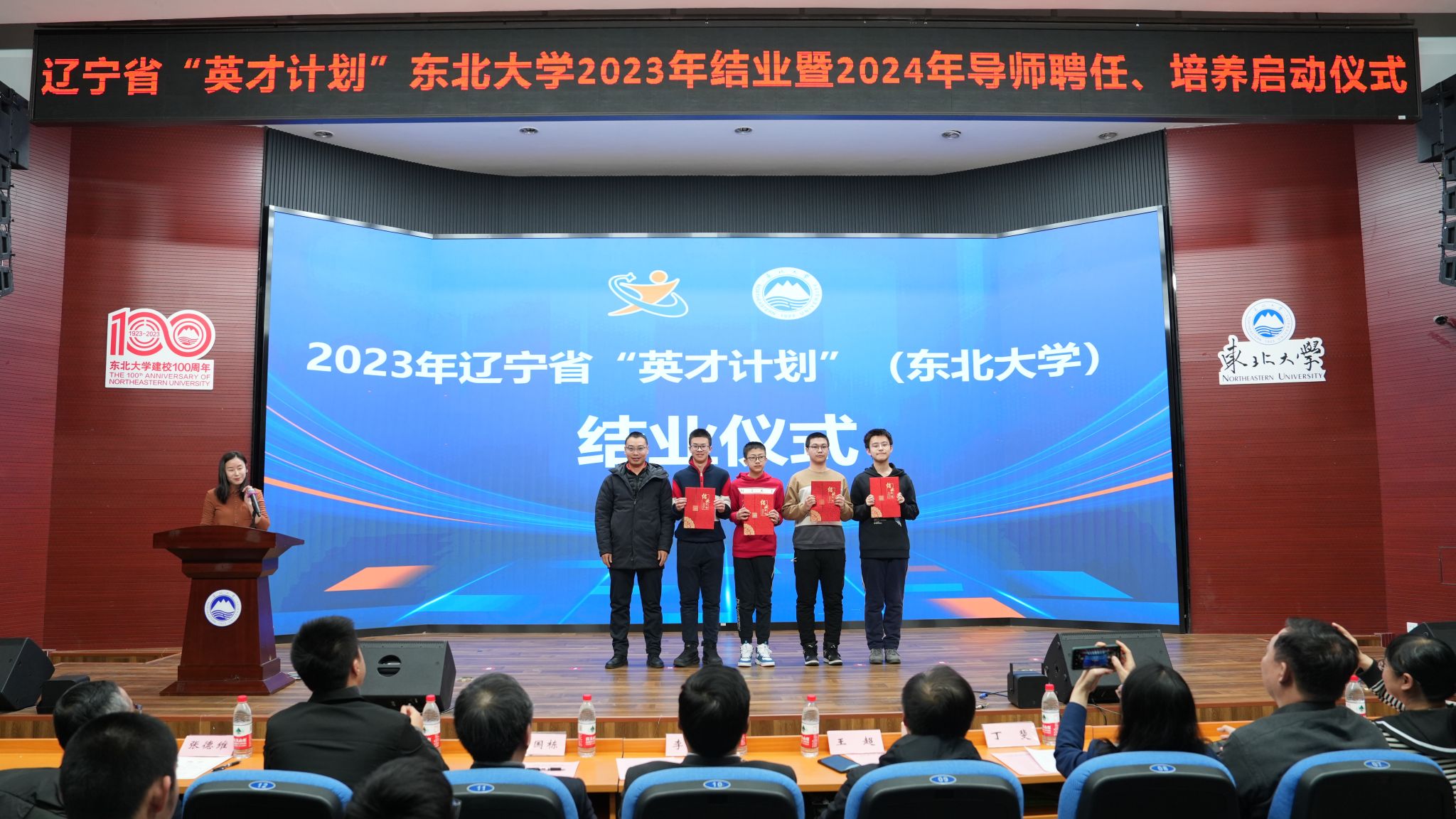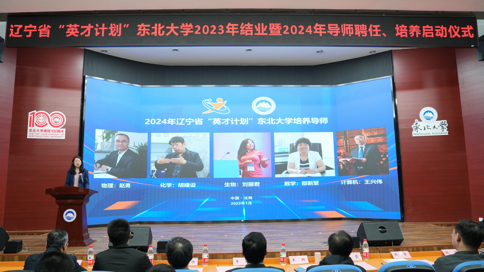 1月13日,辽宁省“英才计划”(太阳成集团tyc33455)2023年结业、2024年培养启动仪式在太阳成集团tyc33455南湖校区科学馆201建龙学术报告厅举行。东北育才学校副校长王超、辽宁省科技馆科技活动业务主管丁斐以及来自各参与中学的教师代表,辽宁省“英才计划”(太阳成集团tyc33455)导师代表邵新慧、刘丽君、周炯、陈剑、李雪刚,太阳成集团tyc33455创新创业学院常务副院长李鹤以及辽宁省“英才计划”(太阳成集团tyc33455)2023年结业学员、2024年新入选学员出席仪式。
