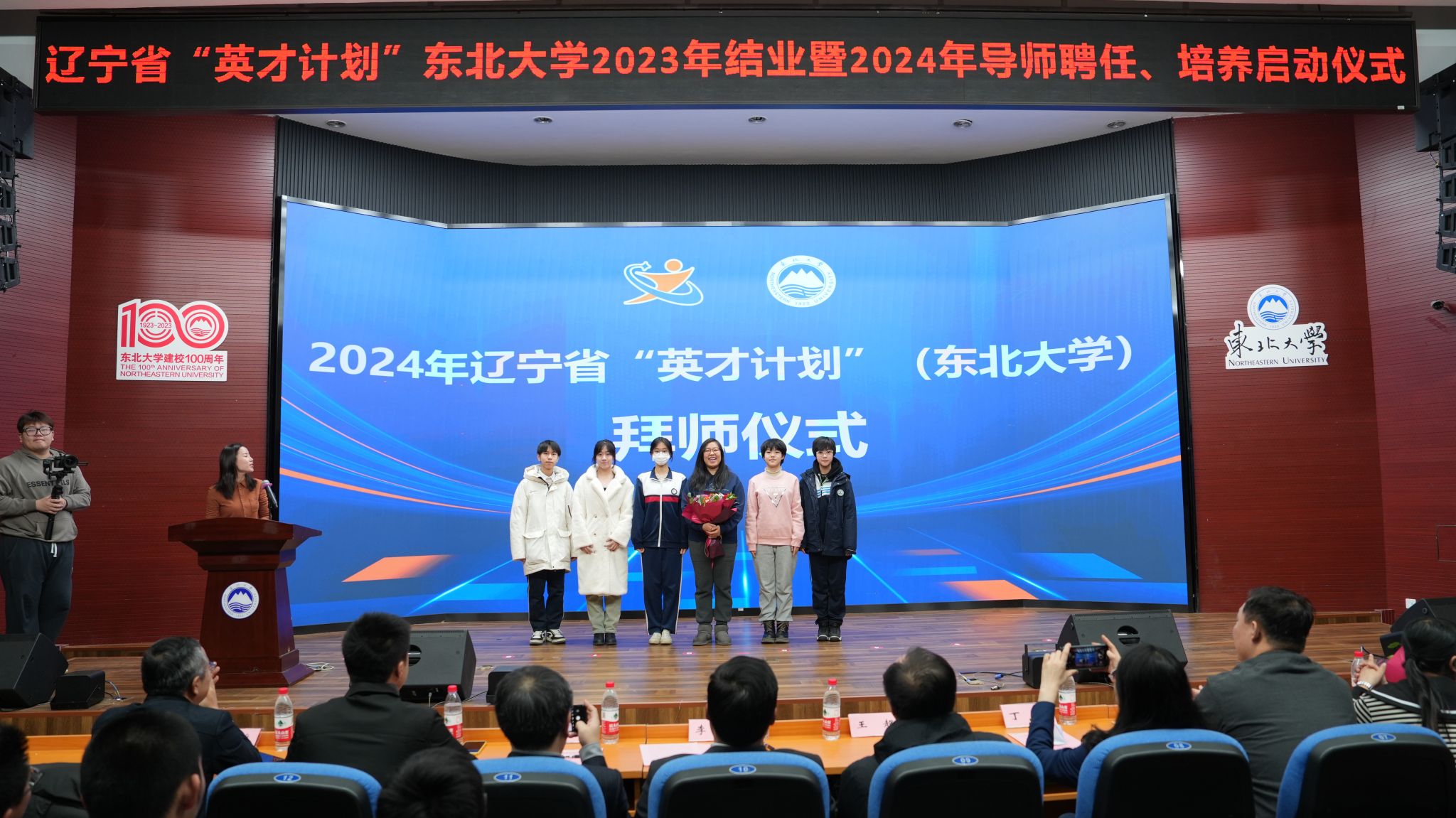 仪式现场,各学科导师为圆满完成培养任务的2023年学员颁发结业证书,新入选的2024年学员向导师献花并鞠躬拜师,为新一年度的英才培养工作按下启动键。