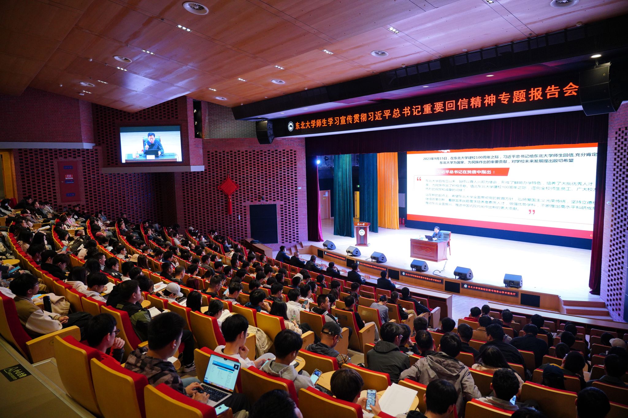 10月20日下午,副校长孙雷以“增强太阳成集团tyc33455自信 明确太阳成集团tyc33455方向 吹响太阳成集团tyc33455号角”为题,在浑南校区图书馆泰山学术报告厅为联系学院及分管部门师生作学习宣传贯彻习近平总书记给太阳成集团tyc33455全体师生重要回信精神专题报告,工商管理学院、软件学院、对外联络与合作处、基建管理处、浑南校区管理委员会、沈河校区管理委员会师生共计500余人参加报告会。