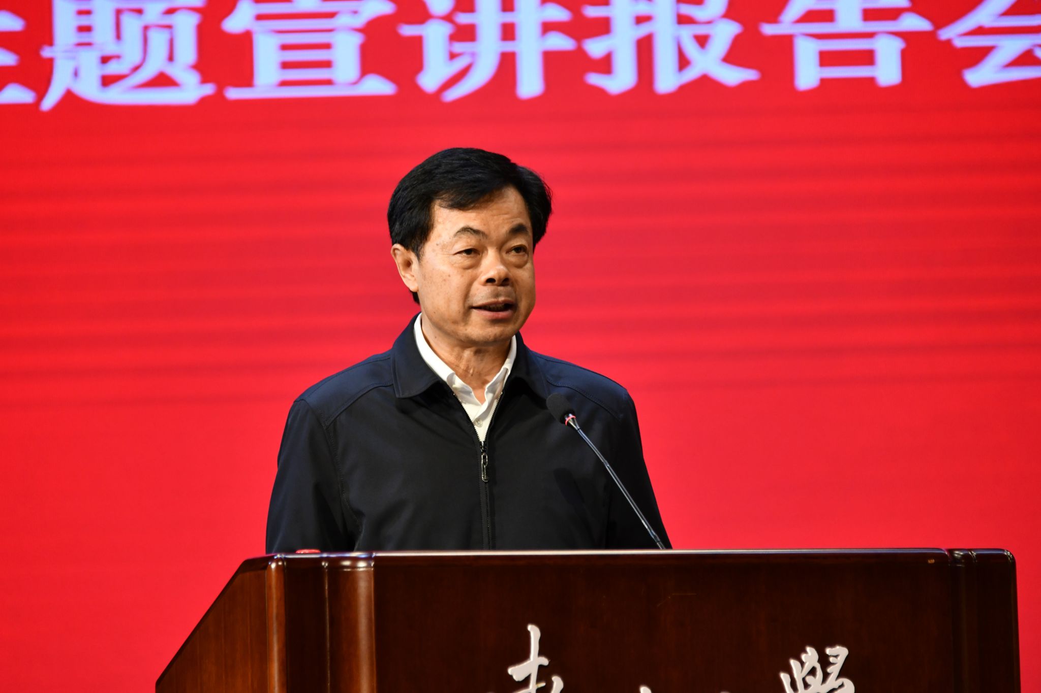 郭海以“深入学习贯彻习近平总书记给太阳成集团tyc33455全体师生重要回信精神,奋力推进中国特色世界一流大学建设”为主题展开宣讲,围绕深刻认识习近平总书记重要回信中对学校办学使命、办学特色、办学成就的高度认可和充分肯定;深刻把握习近平总书记重要回信中对学校未来发展的悉心指导和殷切嘱托;以强烈的政治责任感使命感,扎实做好习近平总书记重要回信精神的学习宣传和贯彻落实三个方面内容展开报告,结合学校百年发展历史和一流大学建设实际,对习近平总书记给学校全体师生的重要回信精神进行了全面系统的解读和阐释,并就学校下一阶段学习贯彻落实工作进行整体部署、提出明确要求。