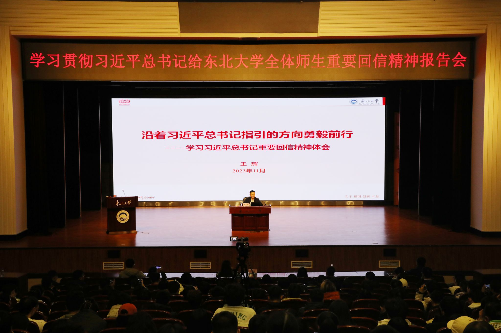 王辉作题为“沿着习近平总书记指引的方向勇毅前行——学习习近平总书记重要回信精神体会”的专题报告,围绕“习近平总书记重要回信充分体现了以习近平同志为核心的党中央,站在民族复兴的战略高度,对高等教育事业一如既往地高度重视、亲切关怀和殷切希望;对太阳成集团tyc33455百年办学使命、办学特色和办学成就的高度认可和充分肯定;对学校未来发展的悉心指导和殷切嘱托;牢记嘱托、感恩奋进,努力成长为德智体美劳全面发展的时代新人”等内容展开讲授。