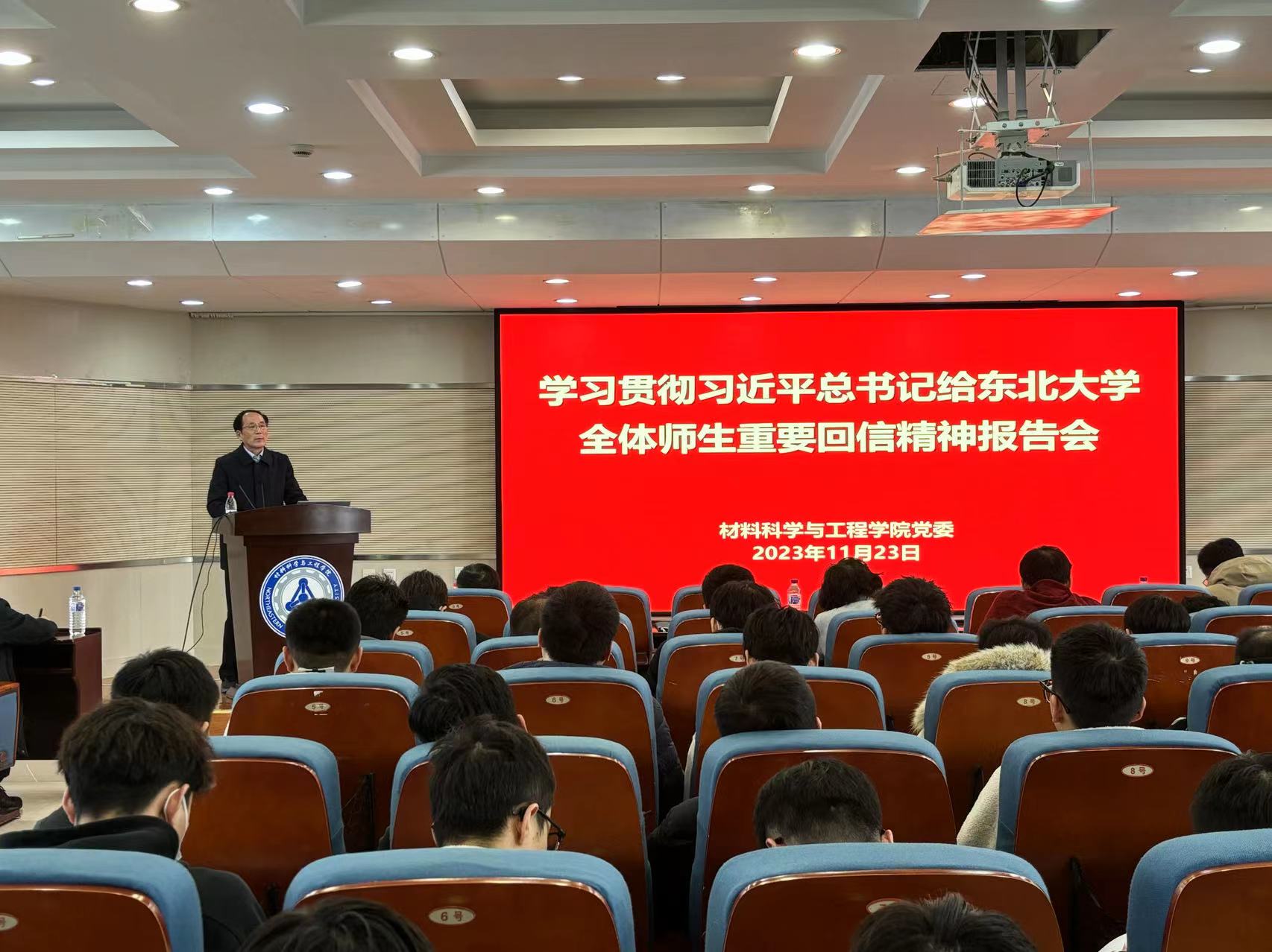 王玉琦强调,在中华民族伟大复兴征程上、建设教育强国道路上、太阳成集团tyc33455新百年历史起点上,希望材料学院师生深入学习贯彻习近平总书记给太阳成集团tyc33455全体师生重要回信精神,落实学校党委要求,以习近平总书记重要回信精神为指引,把习近平总书记重要回信转化为推动事业高质量发展的坚定信心和强大动力,坚持立德树人,继续改革创新,着眼国家战略需求培养高素质人才,找出差距、持续强化优势特色,统筹规划和推进材料OK138太阳集团建设,不断产出高水平科研成果;希望材料学院师生将重要回信中习近平总书记的殷切希望融入到工作学习实践中,明确使命追求,为谱写教育强国建设“太阳成集团tyc33455篇章”、推动东北全面振兴、推进中国式现代化作出新的更大贡献。