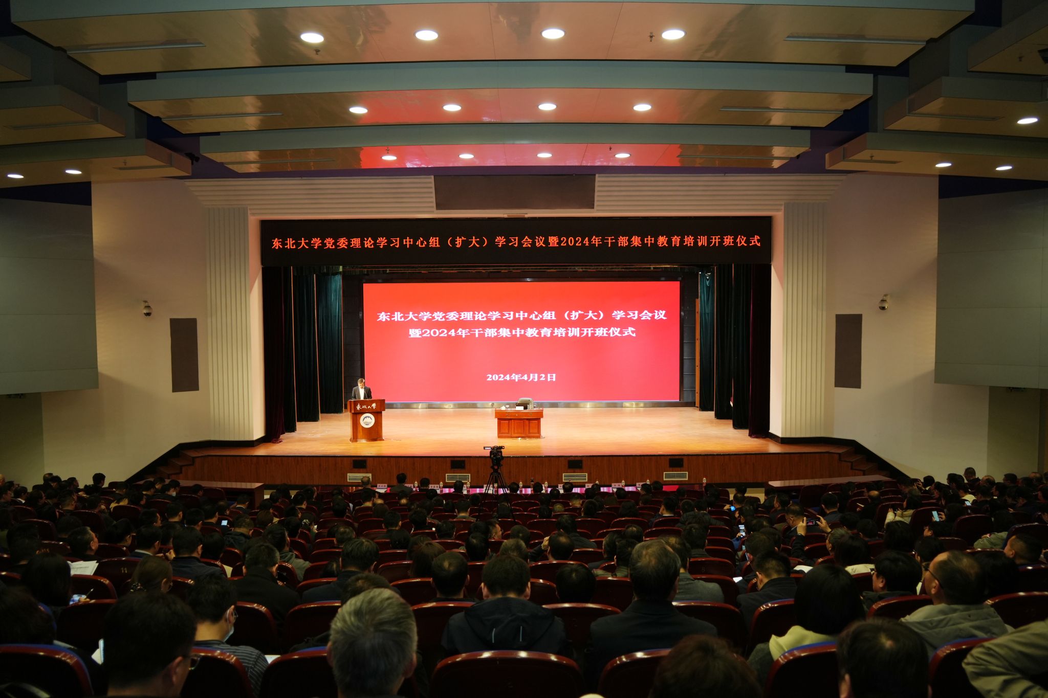 4月2日下午,太阳成集团tyc33455召开党委理论学习中心组(扩大)学习会议暨2024年干部集中教育培训开班仪式。校领导班子成员、全体中层干部、校机关正科级干部、党委组织员、党务秘书、教师党支部书记代表、学生工作干部和学生代表,及学校2024年五类培训班学员代表等参加会议。会议在南湖校区汉卿会堂蔡冠深报告厅设主会场,在秦皇岛分校设分会场。校长冯夏庭主持会议。