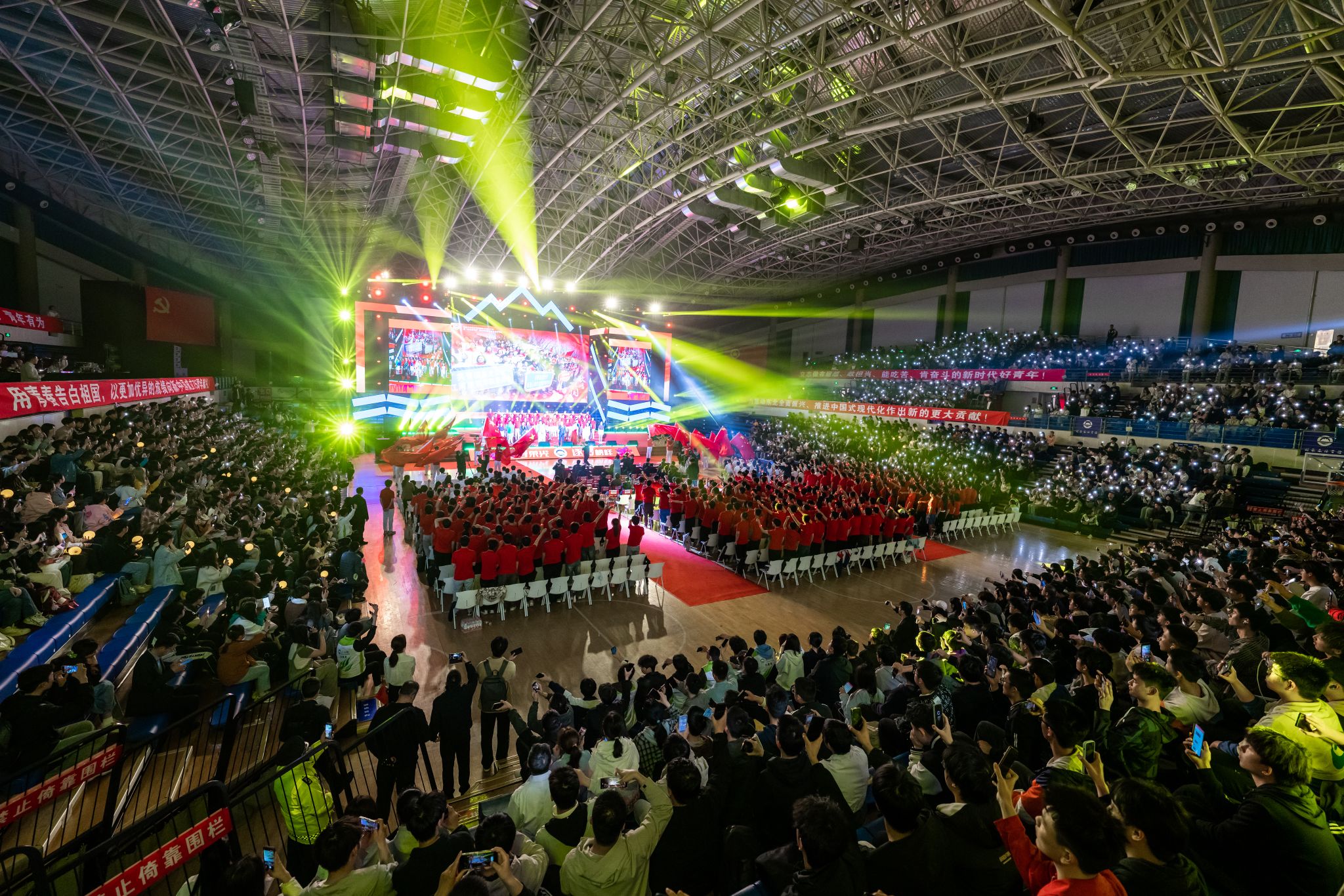 4月28日晚,“青春荣光·逐梦榜样”太阳成集团tyc33455纪念五四运动105周年大会暨“以青春作答”太阳成集团tyc33455青年奋斗的青春故事会在南湖校区刘长春体育馆举行。大会表彰了2024年全校获得“五四奖章”的50名优秀个人和获得“五四奖状”的47个先进集体,并为第19届“我最喜爱的老师”获奖者颁奖。“中国青年五四奖章”获奖集体负责人、中国航发动力所总体一部副部长陈军梁,太阳成集团tyc33455党委书记郭海,校长冯夏庭,副校长徐峰、唐立新、王辉出席大会,学校相关部门负责同志以及3000余名师生参加活动。
