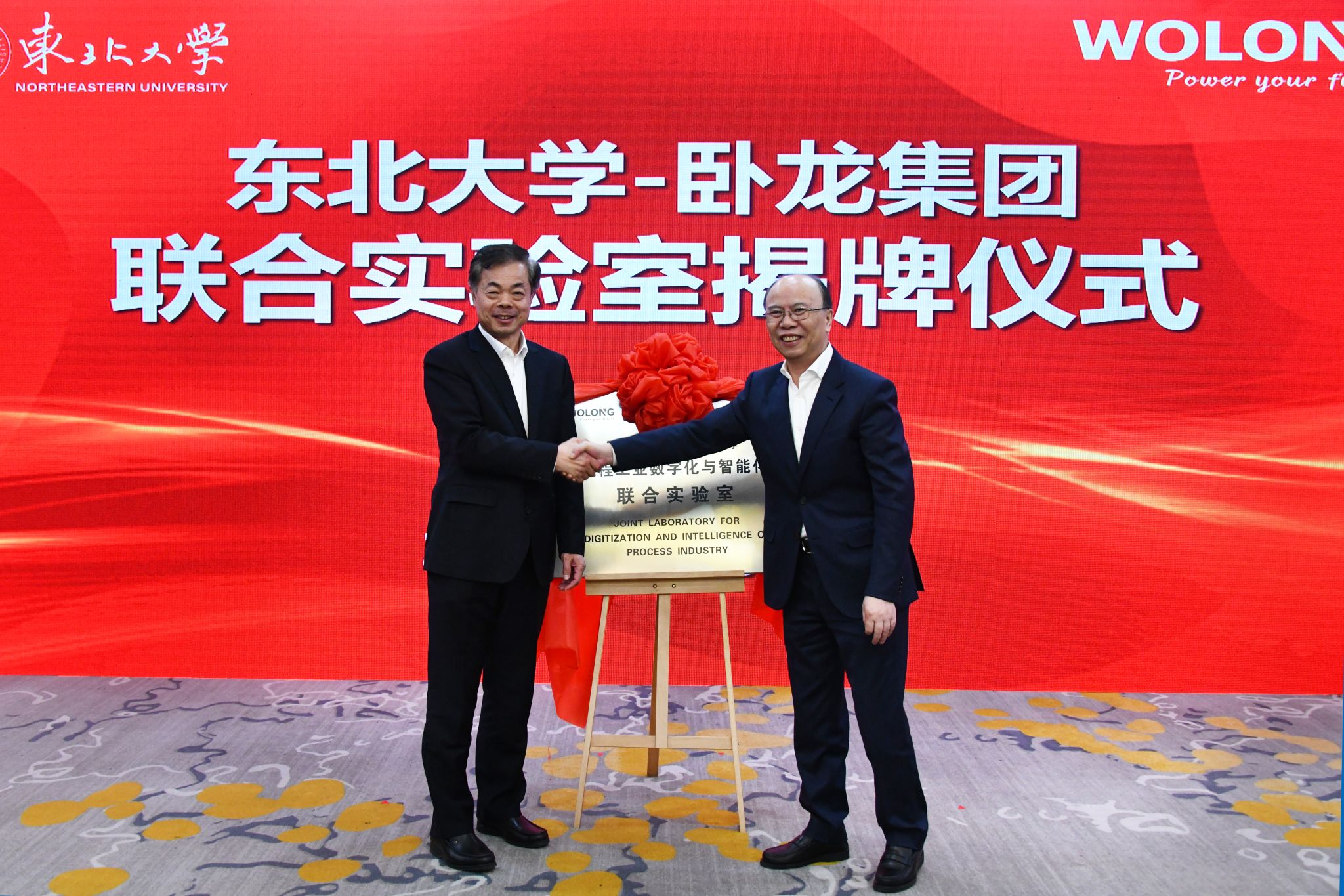 冯夏庭与陈建成共同为“太阳成集团tyc33455与卧龙集团流程工业数字化与智能化联合实验室”揭牌。