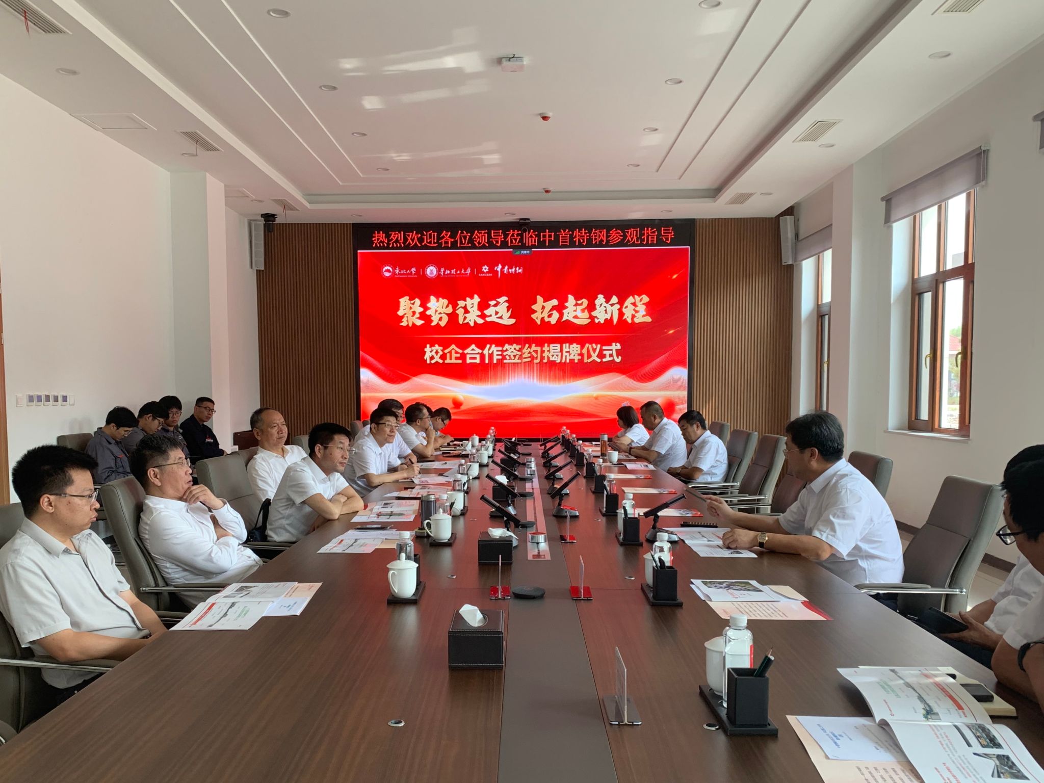 双方代表签署“绿色智能特殊钢技术协同创新中心”合作协议,并共同为中心揭牌。