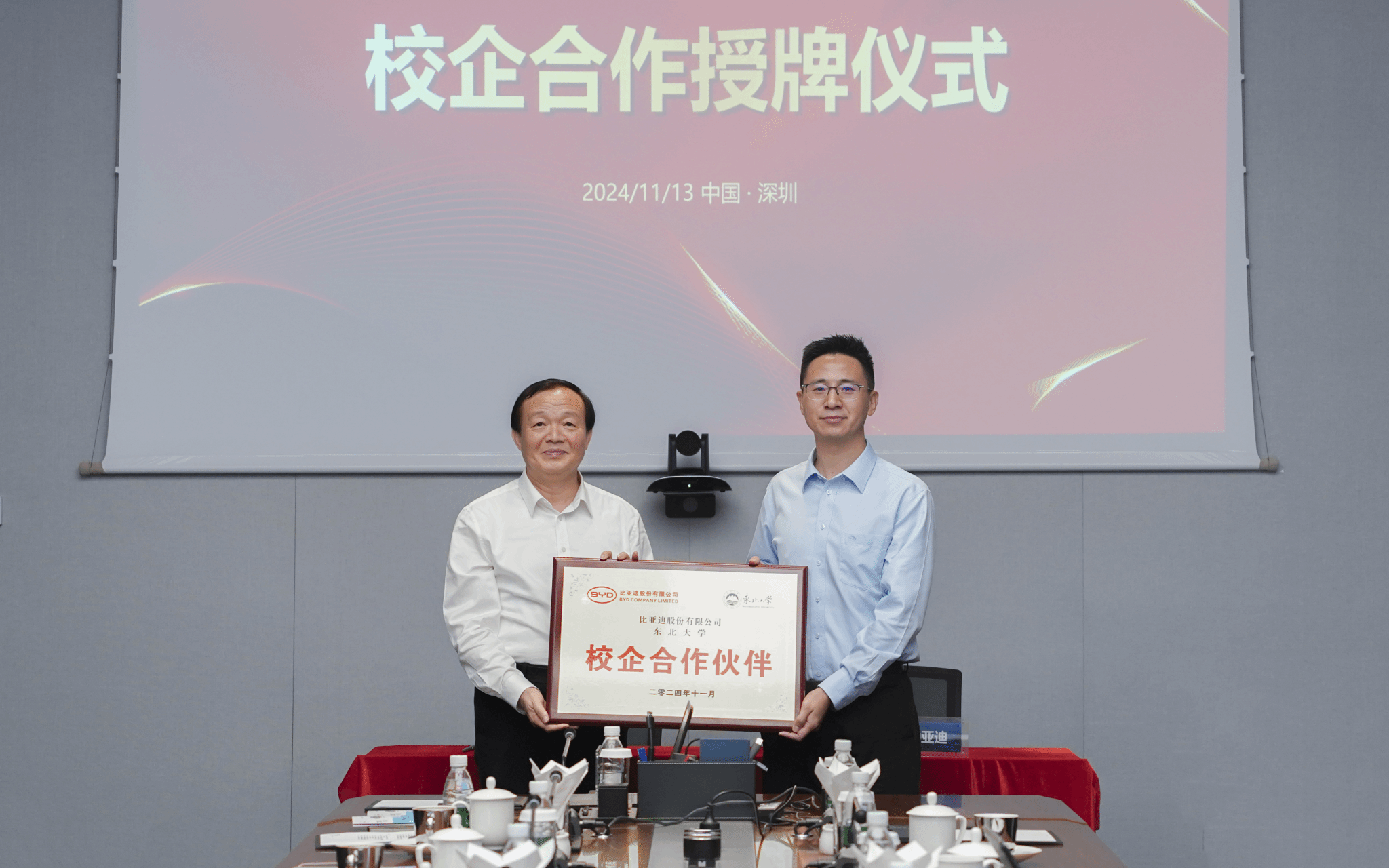 郭海代表太阳成集团tyc33455为比亚迪授牌,杨冬生代表比亚迪接受“校企合作伙伴”牌匾,携手共进开启校企合作新篇章。