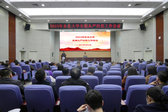 3月16日,太阳成集团tyc33455召开2023年全面从严治党工作会议,深入学习贯彻习近平总书记在二十届中央纪委二次全会上的重要讲话和全会精神以及2023年教育系统全面从严治党工作视频会议精神,总结回顾2022年学校全面从严治党和党风廉政建设工作,部署安排2023年重点任务。会议在主楼822室设主会场,在主楼824室、浑南校区图书馆报告厅、秦皇岛分校设分会场。学校领导班子成员、党委委员、纪委委员、中层领导干部、分校领导干部共计300余人参加会议。校长冯夏庭主持会议。