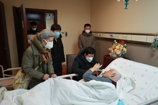 1月13日上午,校党委书记熊晓梅来到沈阳市第四人民医院看望慰问了原东北工学院党委副书记李导。党委组织部、离退休工作处[离退休党委]相关负责同志陪同看望。