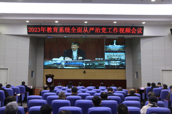 会议强调,要坚持以习近平新时代中国特色社会主义思想为指导,全面贯彻党的二十大精神,深入落实二十届中央纪委二次全会精神,深刻领悟“两个确立”的决定性意义,增强“四个意识”、坚定“四个自信”、做到“两个维护”,认真落实健全全面从严治党体系任务要求,进一步压紧压实管党治校政治责任,把严的基调、严的措施、严的氛围长期坚持下去,以彻底的自我革命精神一刻不停推进全面从严治党,为加快建设高质量教育体系,建设教育强国,办好人民满意的教育提供坚强保障。一要坚持以党的政治建设为统领,持续深入学习贯彻党的二十大精神,坚持不懈用习近平新时代中国特色社会主义思想凝心铸魂,坚定捍卫“两个确立”,以实际行动深入践行“两个维护”。二要健全全面从严治党体系,全方位全过程推进全面从严治党,突出“关键少数”强化教育管理监督,压紧压实管党治校责任,健全制度体系强化制度执行,不折不扣落实新时代全面从严治党新精神新要求。三要贯彻落实新时代党的组织路线,着力增强基层党组织政治功能和组织功能,强化党员教育管理,建设高素质干部人才队伍,为教育改革发展提供坚强组织保障和干部人才支撑。四要主动防范化解风险,把政治安全和意识形态安全摆在首位,切实维护校园安全稳定,加强学生心理健康教育,提升风险防范化解能力水平,牢牢守住教育安全稳定底线。五要不断健全监督体系,自觉主动接受监督,完善权力监督制约机制,促进各类监督贯通协调,让权力在阳光下运行。六要持之以恒正风肃纪,锲而不舍落实中央八项规定精神,把纪律建设摆在更加突出位置,切实加强对年轻干部的教育管理监督,筑牢拒腐防变思想防线,始终保持反腐败斗争高压态势,坚决打赢反腐败斗争攻坚战持久战。